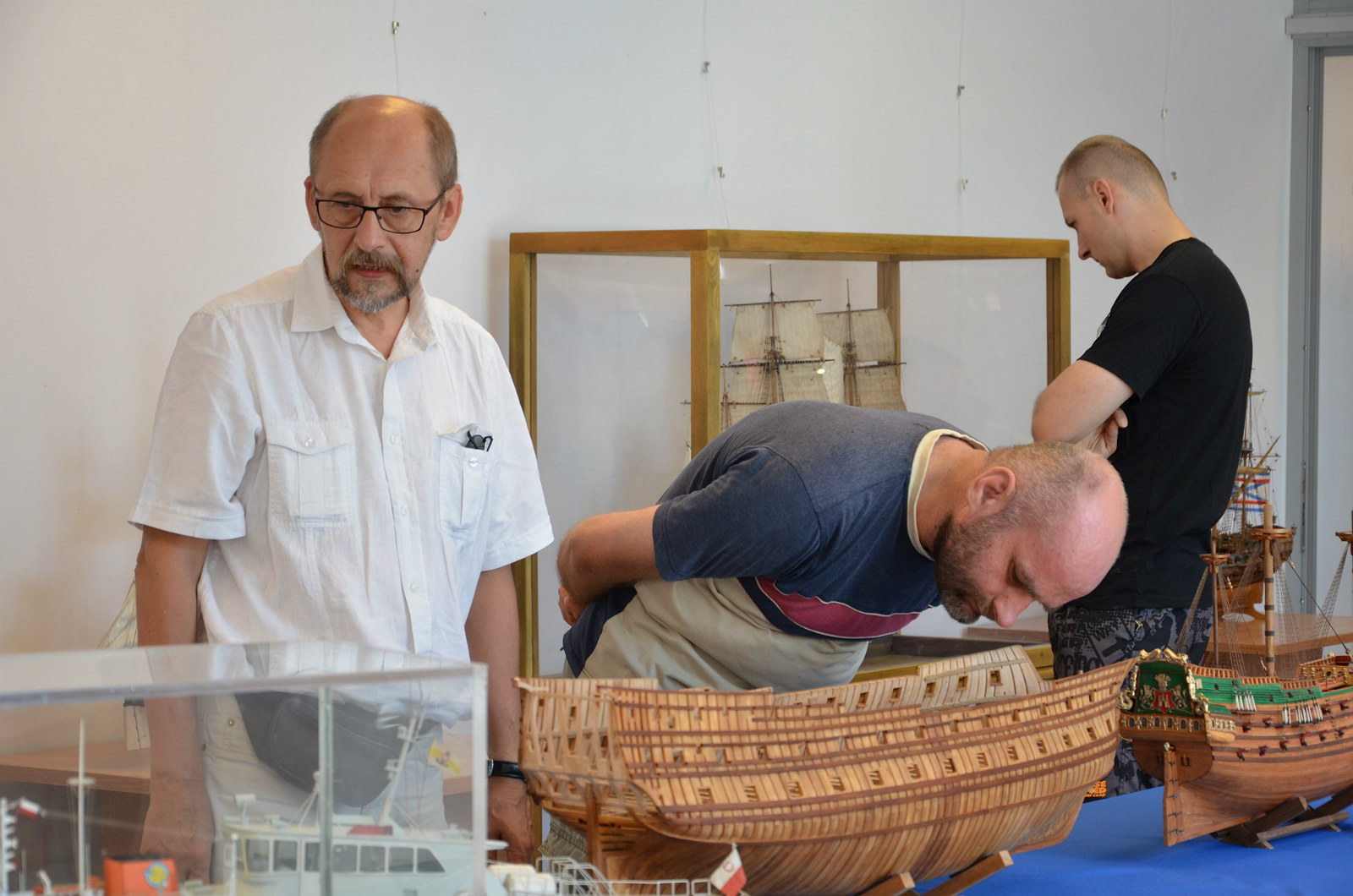 Tu dyskusja nad najbardziej szkutniczym modelem na wystawie. Nie miał wprawdzie żagli, ale będziemy nad tym pracować.