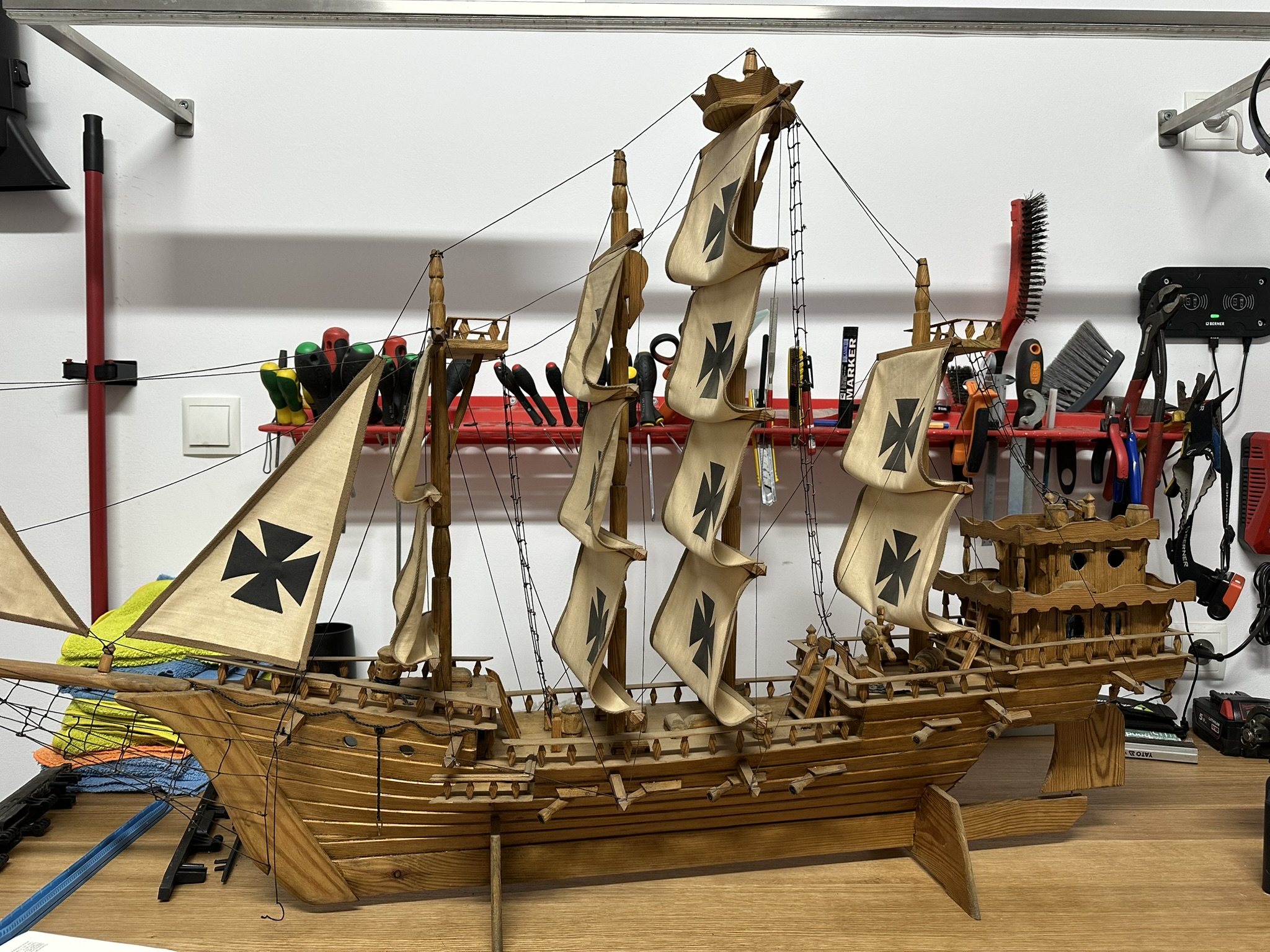 Możliwe, że dziadek wzorował sìę na Galeonach Portugalskich lub Santa Maria z załącznika a to z sercem stworzona jego wizja artystyczna, ale ja tu jestem nowy więc mało wiem jeszcze Powodzenia