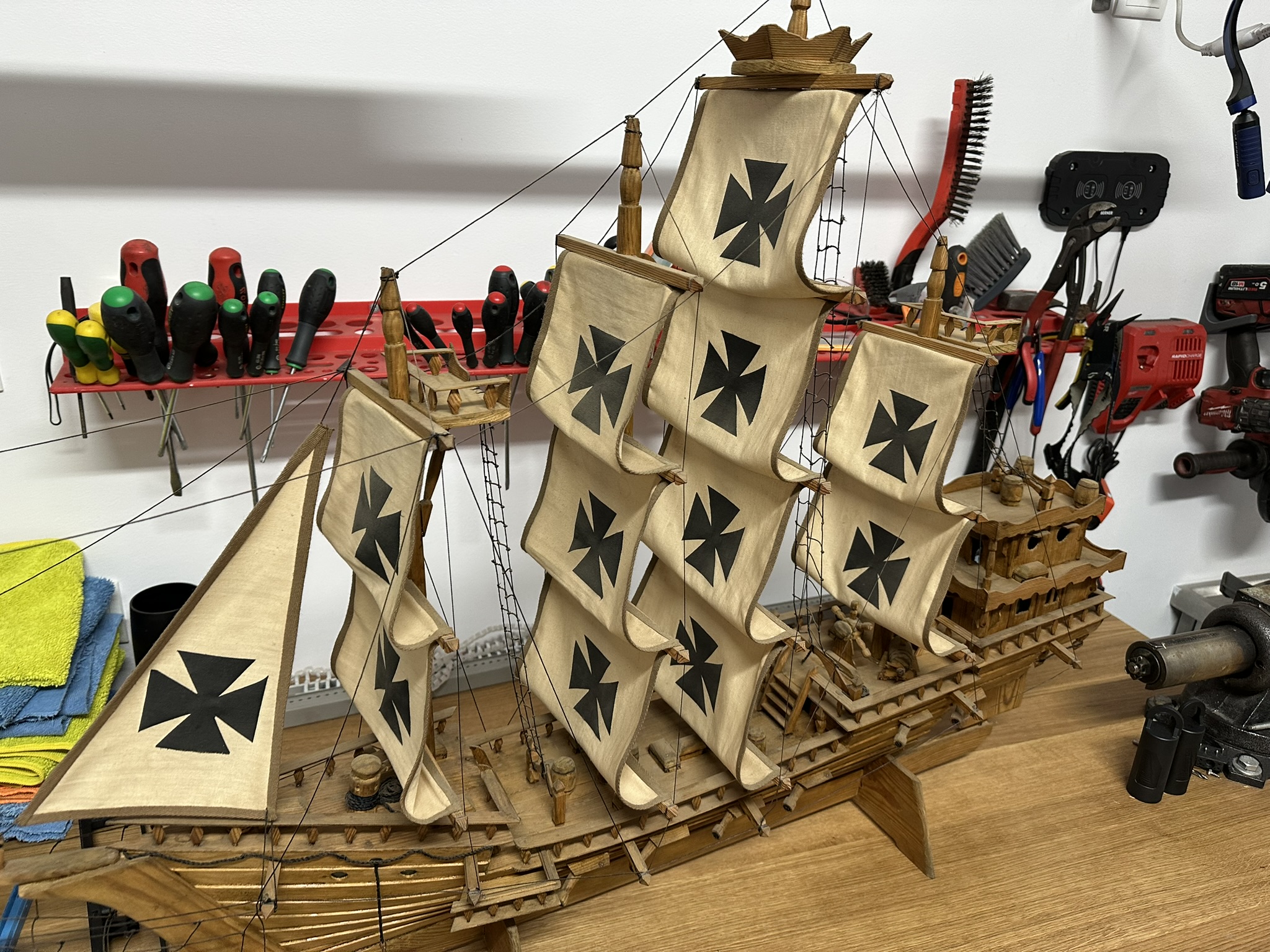 Poza tym, calosc jest zbudowana raczej prymitywnie, detale tylko zaznaczone, albo i nie, sladowe olinowanie ruchome, model typowo kominkowy...,