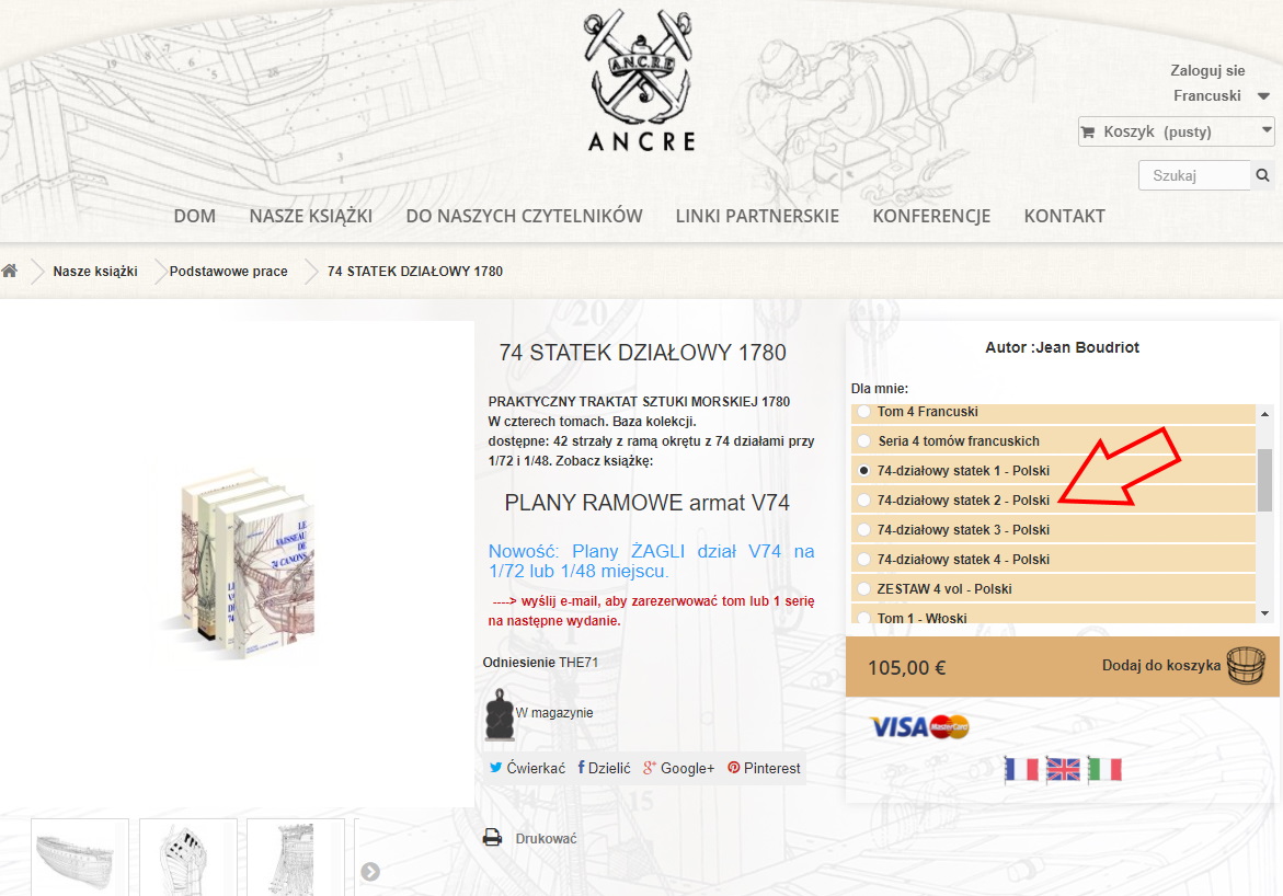 Kiedyś śmialiście się, że widziałem na stronie wydawnictwa Ancre polską wersję językową jednego z modeli. A tutaj okazuje się, że mamy komplet statku 74 działowego w naszym rodzimym języku.