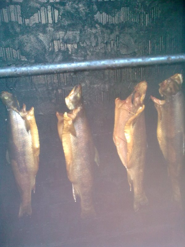 Pochwalę się swoją zadymiarką (wędzarnikiem). Pobudowałem go trzy lata temu, a w tym roku skończyłem zadaszenie nad kanałem i paleniskiem. Do tej pory wędziłem zawsze świninkę i dziczyznę, a dziś postanowiłem uwędzić se rybkę. Wyszła zarąbista.
