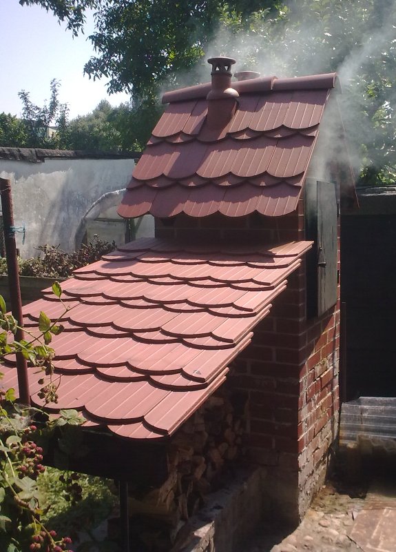 Pochwalę się swoją zadymiarką (wędzarnikiem). Pobudowałem go trzy lata temu, a w tym roku skończyłem zadaszenie nad kanałem i paleniskiem. Do tej pory wędziłem zawsze świninkę i dziczyznę, a dziś postanowiłem uwędzić se rybkę. Wyszła zarąbista.