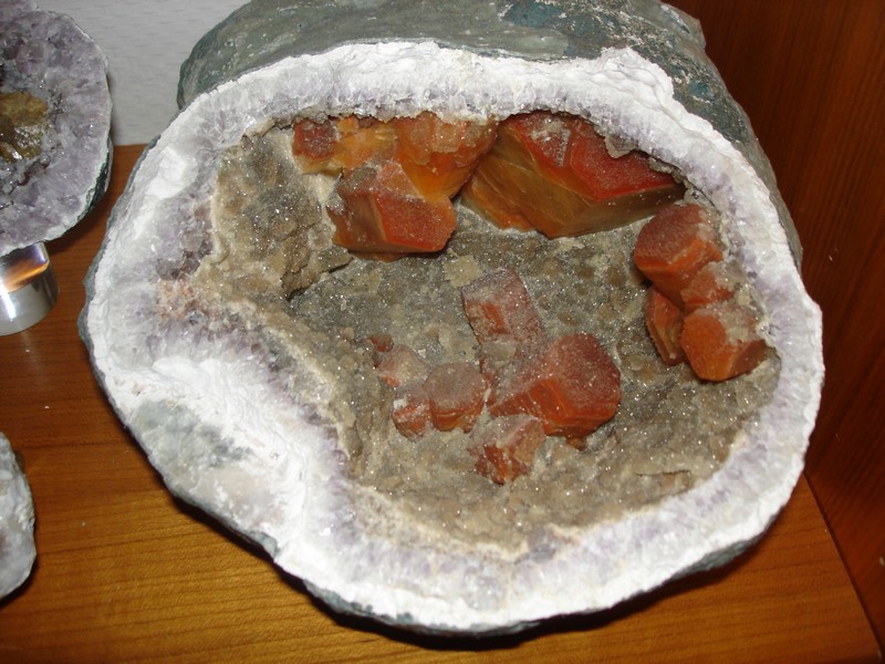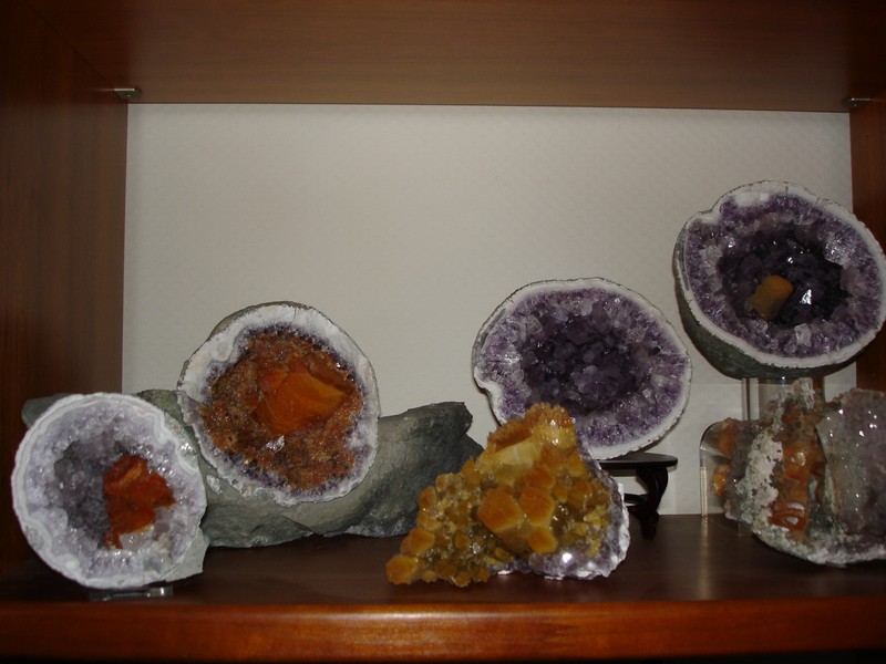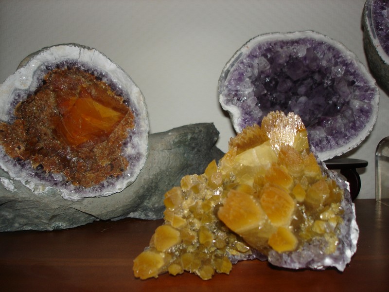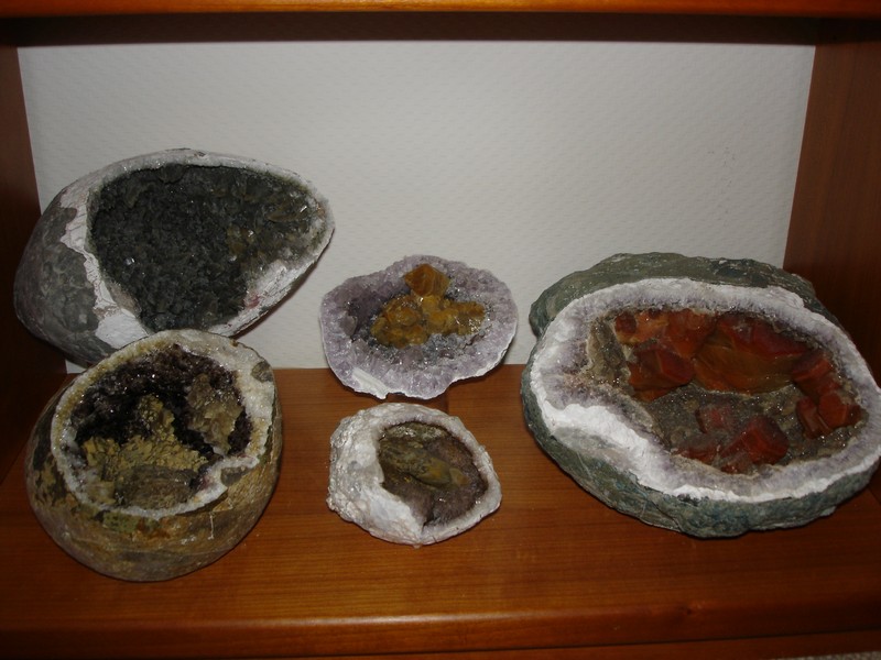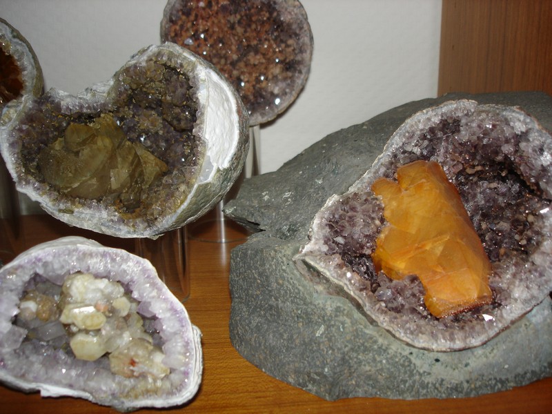 Podczas zjazdu rozgadalem sie miedzy innymi na temat mojego innego hobby, mineralogii. Jest to kolekcja lokalna z okolicy Idar Oberstein. Kwarcowe druzy z krysztalami kalcytow. Kilka przykladow: