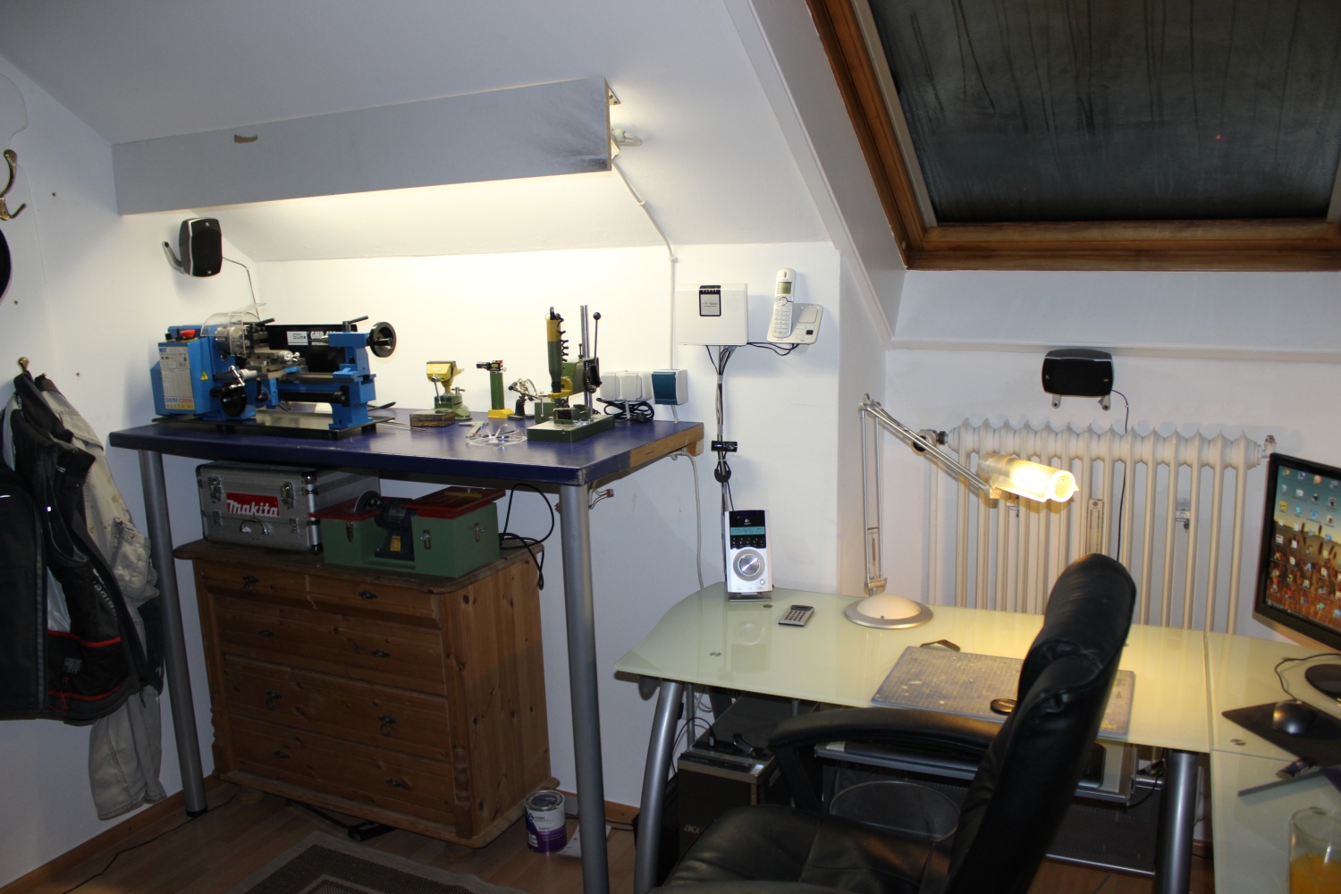 Narodziny dziecka zmusiły mnie do opuszczenia sypialni z moimi gratami ,po wykonaniu małego remontu w okresie letnim został się wolny kącik który staram się jakoś zagospodarować