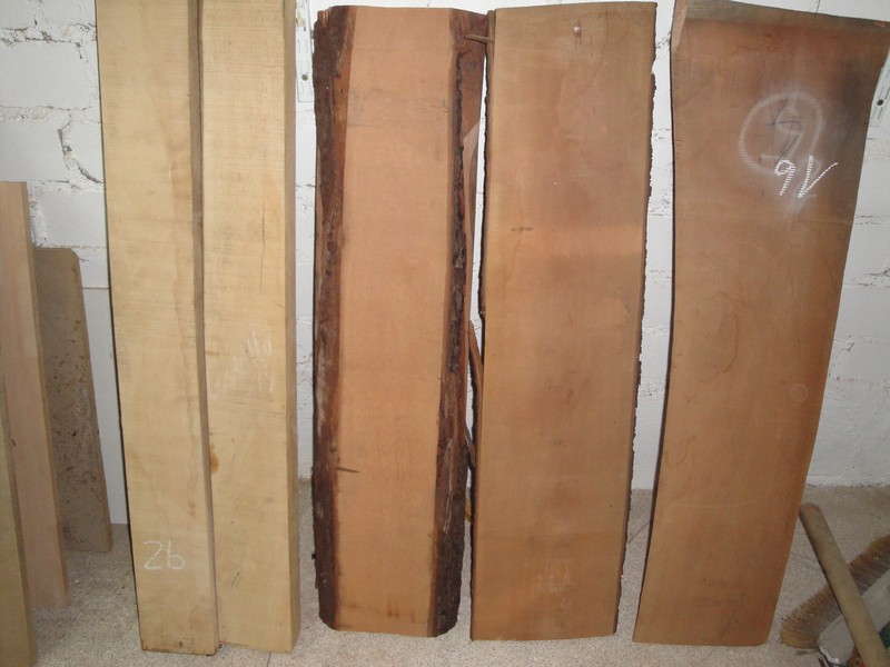 Poniewaz drzewo bylo ostatnio czestym tematem, pochwale sie deskami, ktore zamowilem na nastepny model (ktory by to nie byl, to drzewo i tak potrzebuje). Z pokazanych 3 sztuk wybralem 1 i 2 (od lewej strony). Pozycja 3 ma niejednolita barwe i jest popekana.1 to gruszka szwajcarska czyli jarzab brekinia (sorbus torminalis) a nie grusza (pyrus). W Polsce to drzewo jest niestety pod ochrona. Rozmiary 3100x190x52mm (ca.25kg). 2 to "bukszpan" Castelo (Calycophyllum multiflorum), w odroznieniu od bukszpanu europejskiego (buxus sempervirens).Rozmiary 2200x130x52mm (13,5kg).