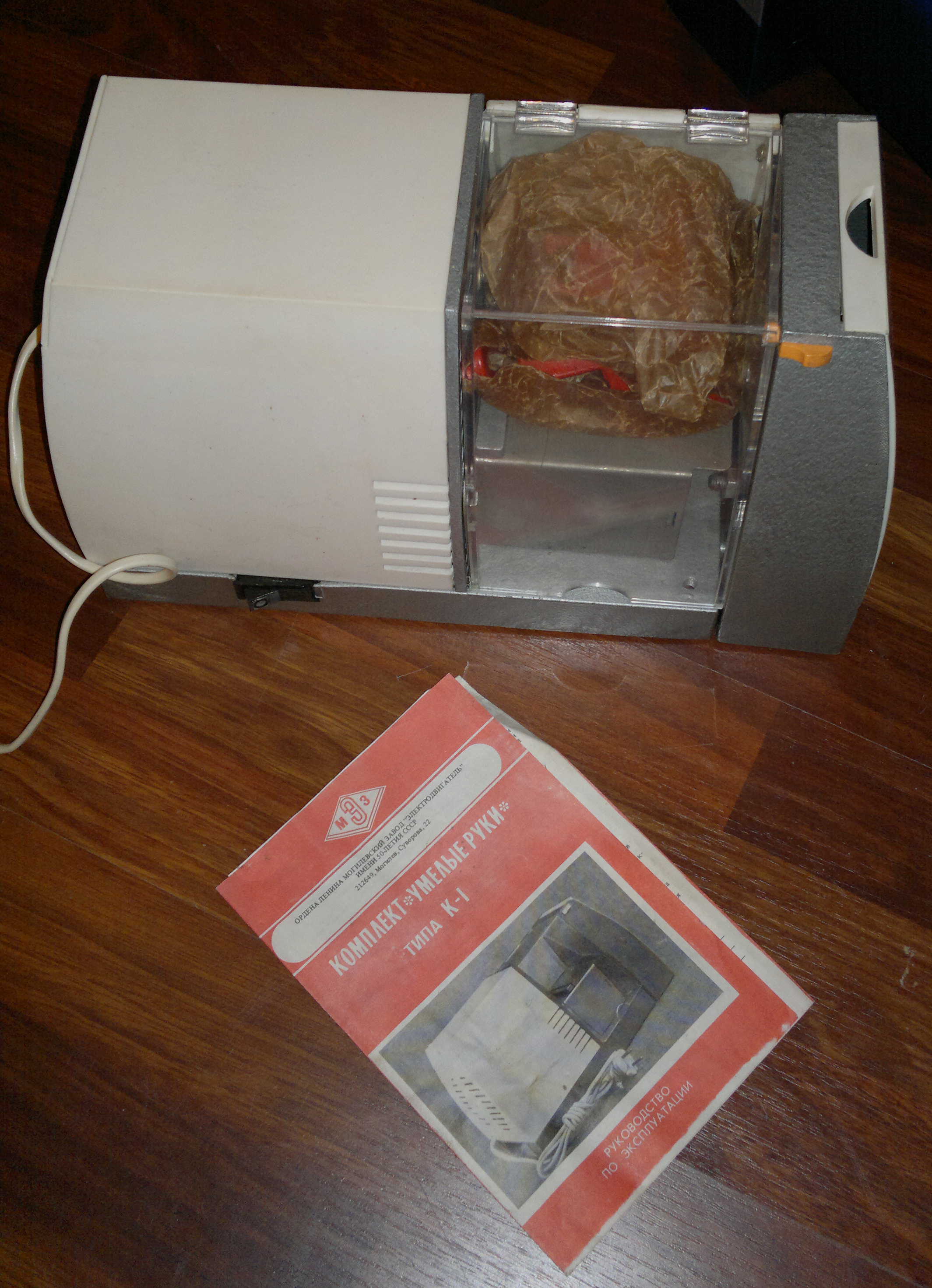Udało mi się niedawno nabyć tokarko - szlifierko - piłę. Dziś dotarła przesyłka. Jest to produkt wykonany w ZSRR, jeśli wierzyć instrukcji obsługi to z października 1989 roku. Sądząc po tym, że była zapakowana w oryginalne pudełko a na dłutach jest jeszcze smar, śmiem stwierdzić, że maszynka nigdy nie była w użyciu. Mam już plan aby służyła mi ona również jako heblarka. Poniżej fotki, mam nadzieję, że będzie mi długo i dzielnie służyć.