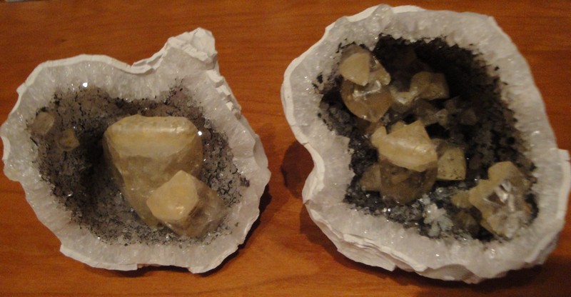 Witam, ponizej rezultaty mojego wyskoku do kamieniolomu: druzy z krysztalami kalcytow