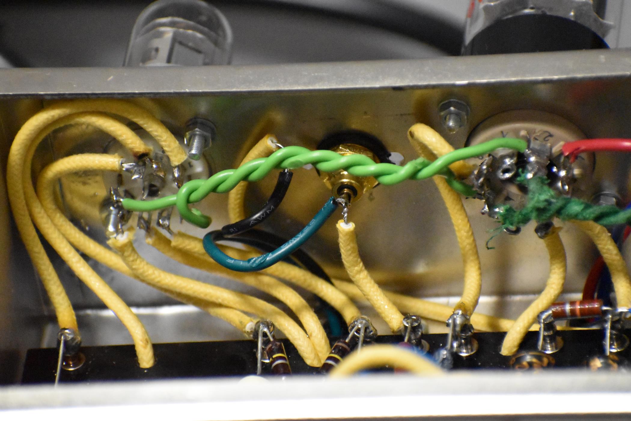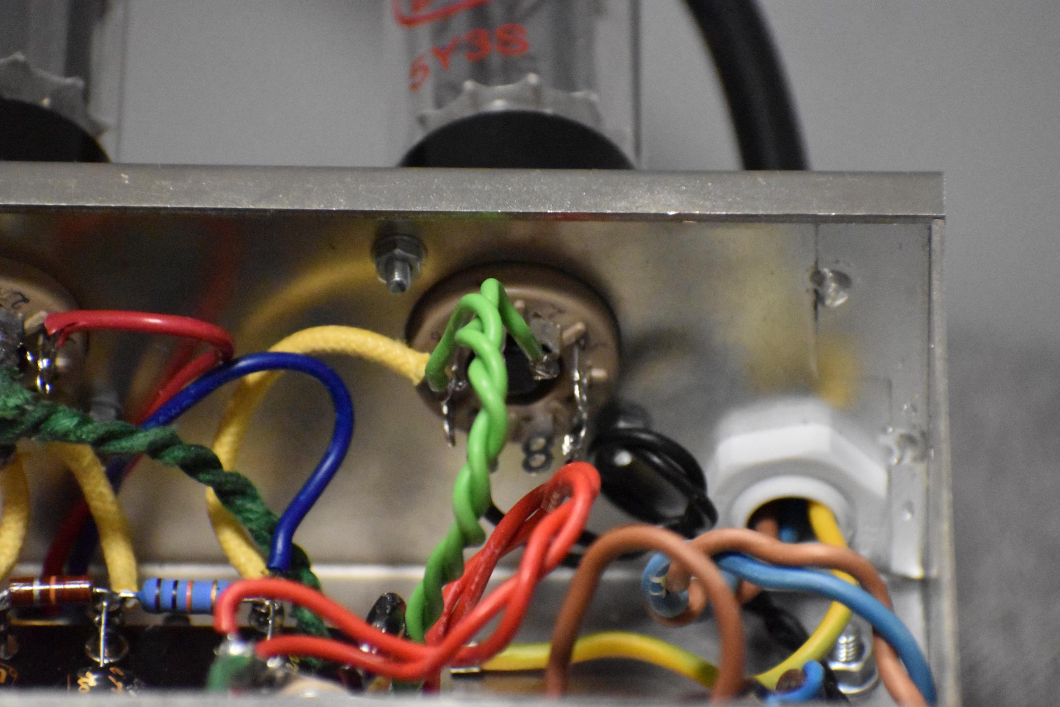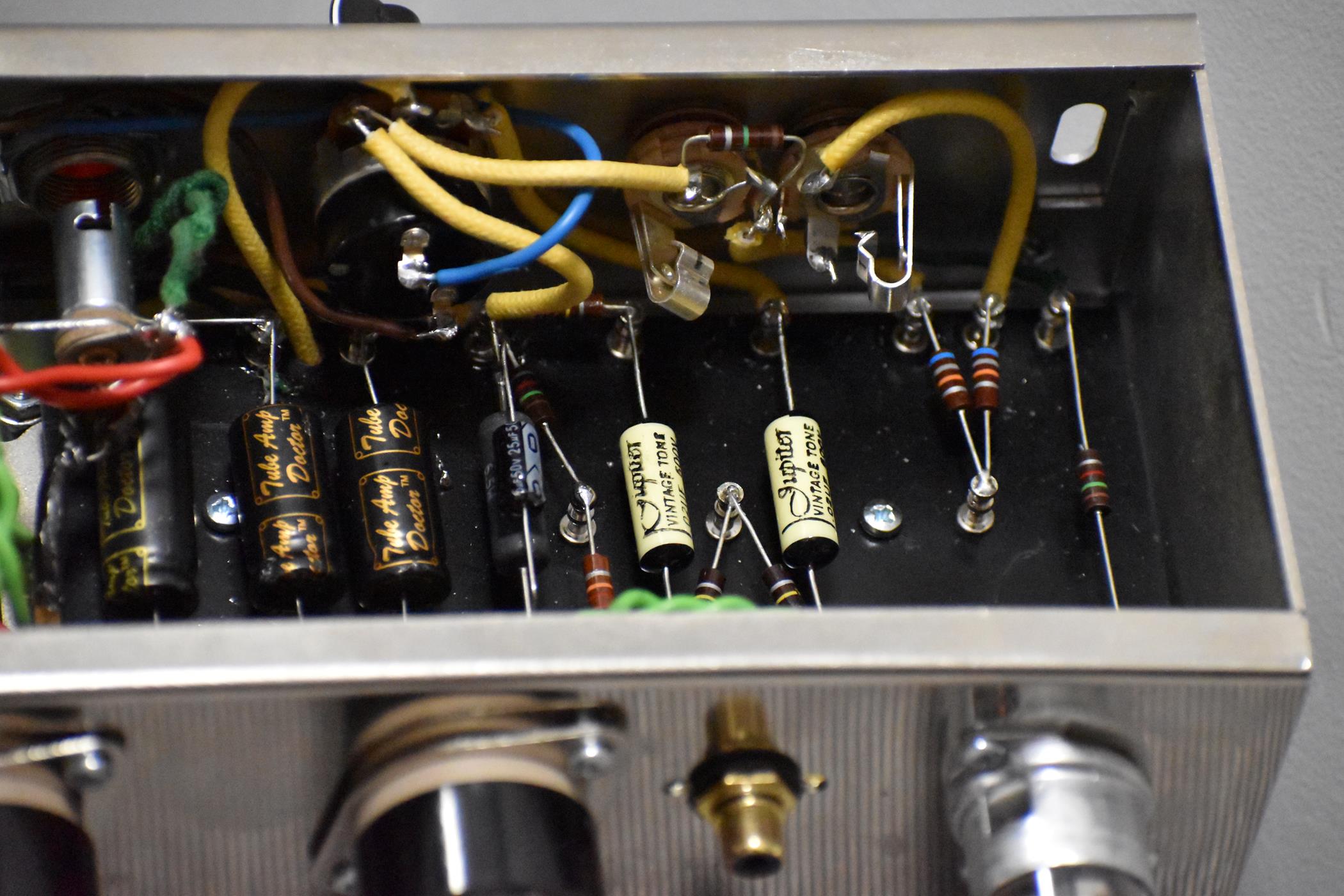 Konstrukcja lampowa 5W, jeden kanał - klon Fendera z lat 50-tych, wykonany taką samą metodą, bez płytek drukowanych.