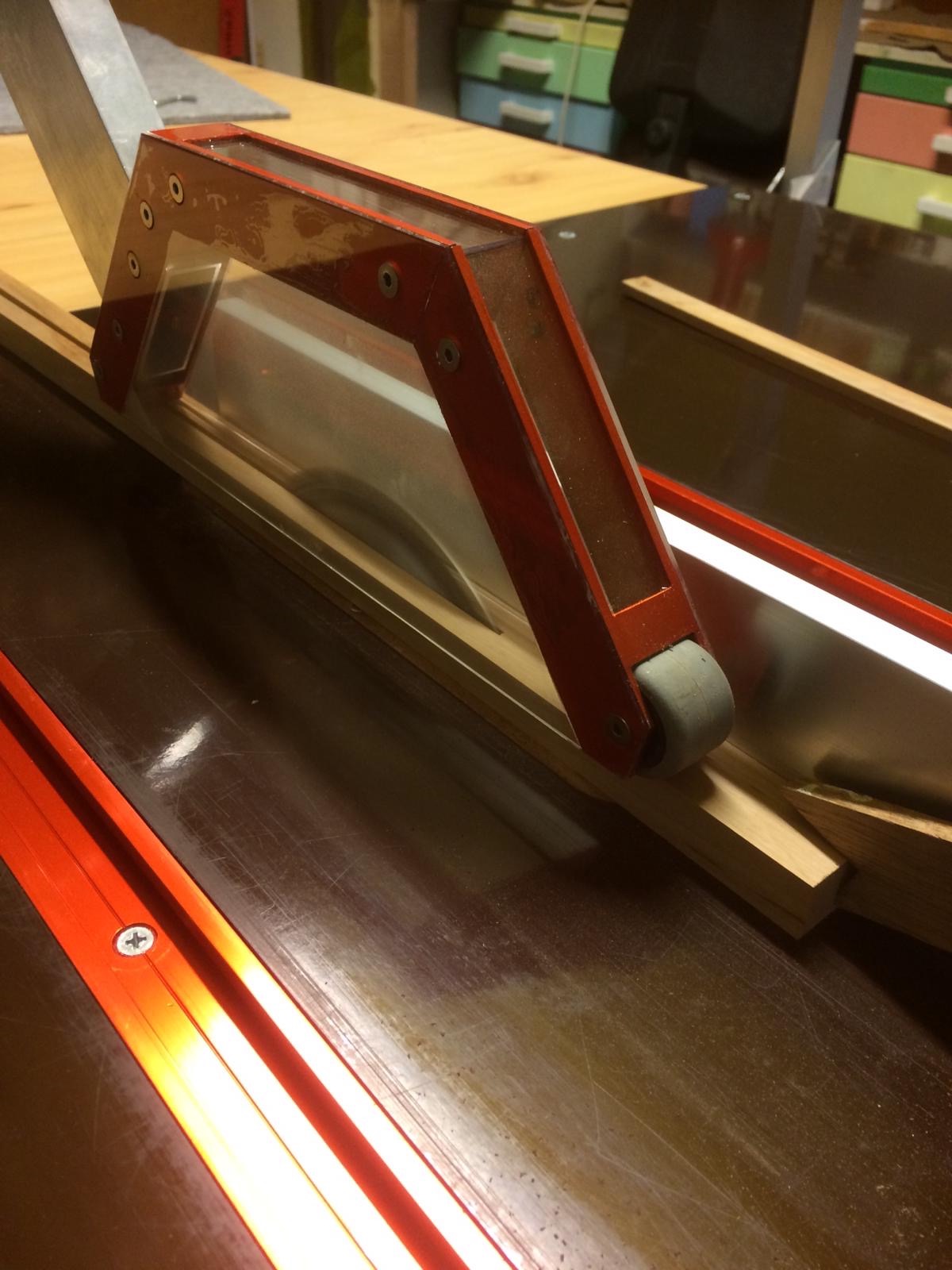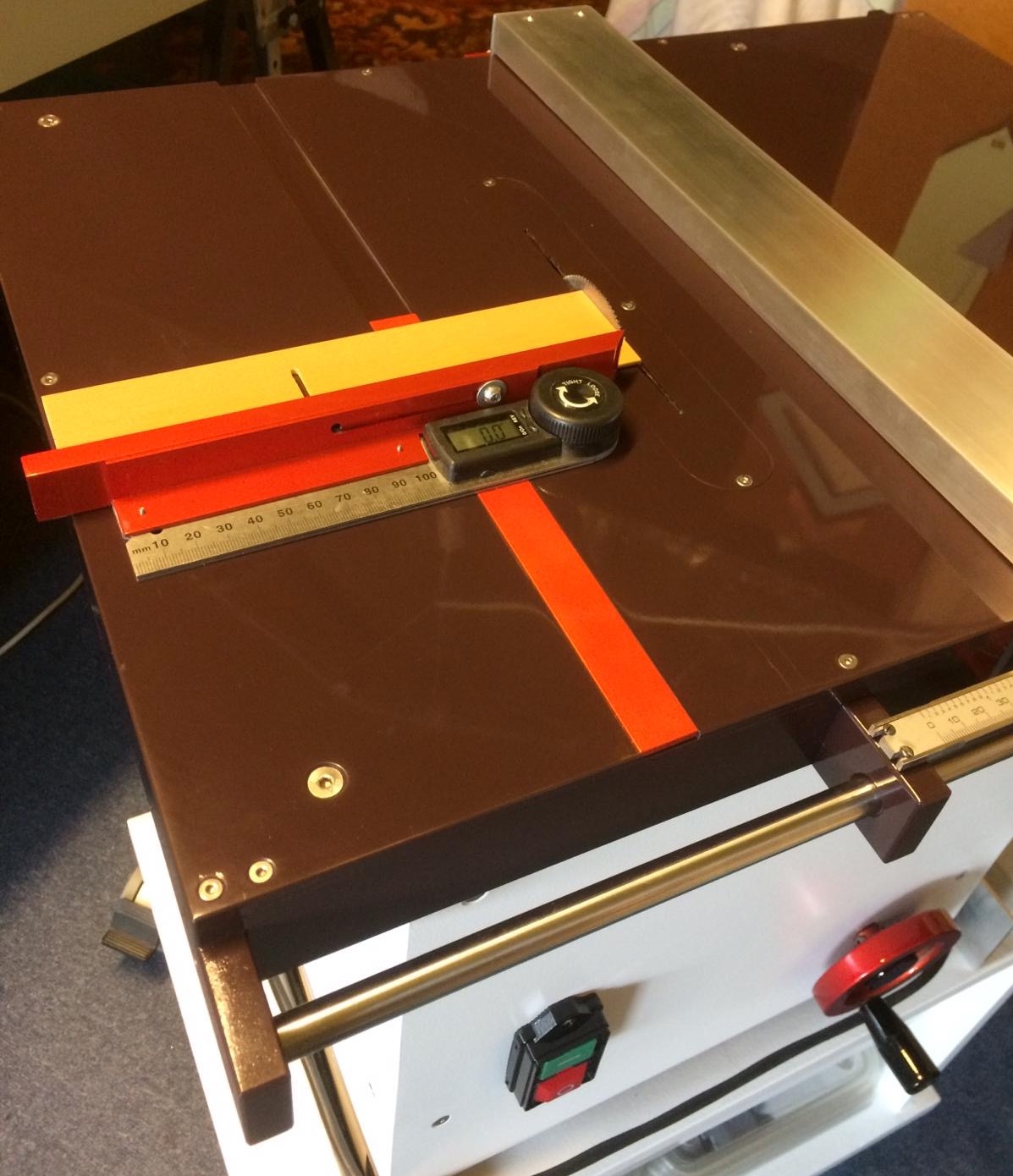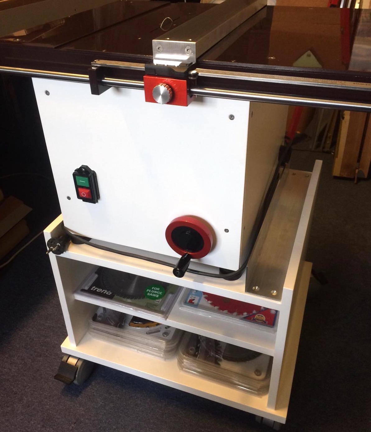 Blat 450x600 mm, a w środku potężny i bardzo ciężki silnik indukcyjny 0,75 kW. Dlatego też tą piłę zrobiłem na kółkach.