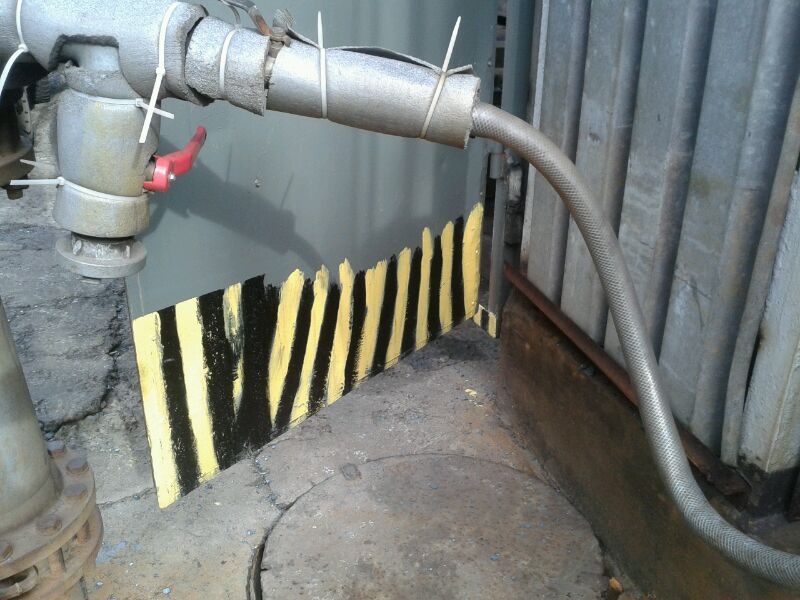 Tak u mnie w pracy młodzież wykonała polecenie BHP-owca , mieli pomalować brame w ostrzegawcze paski...