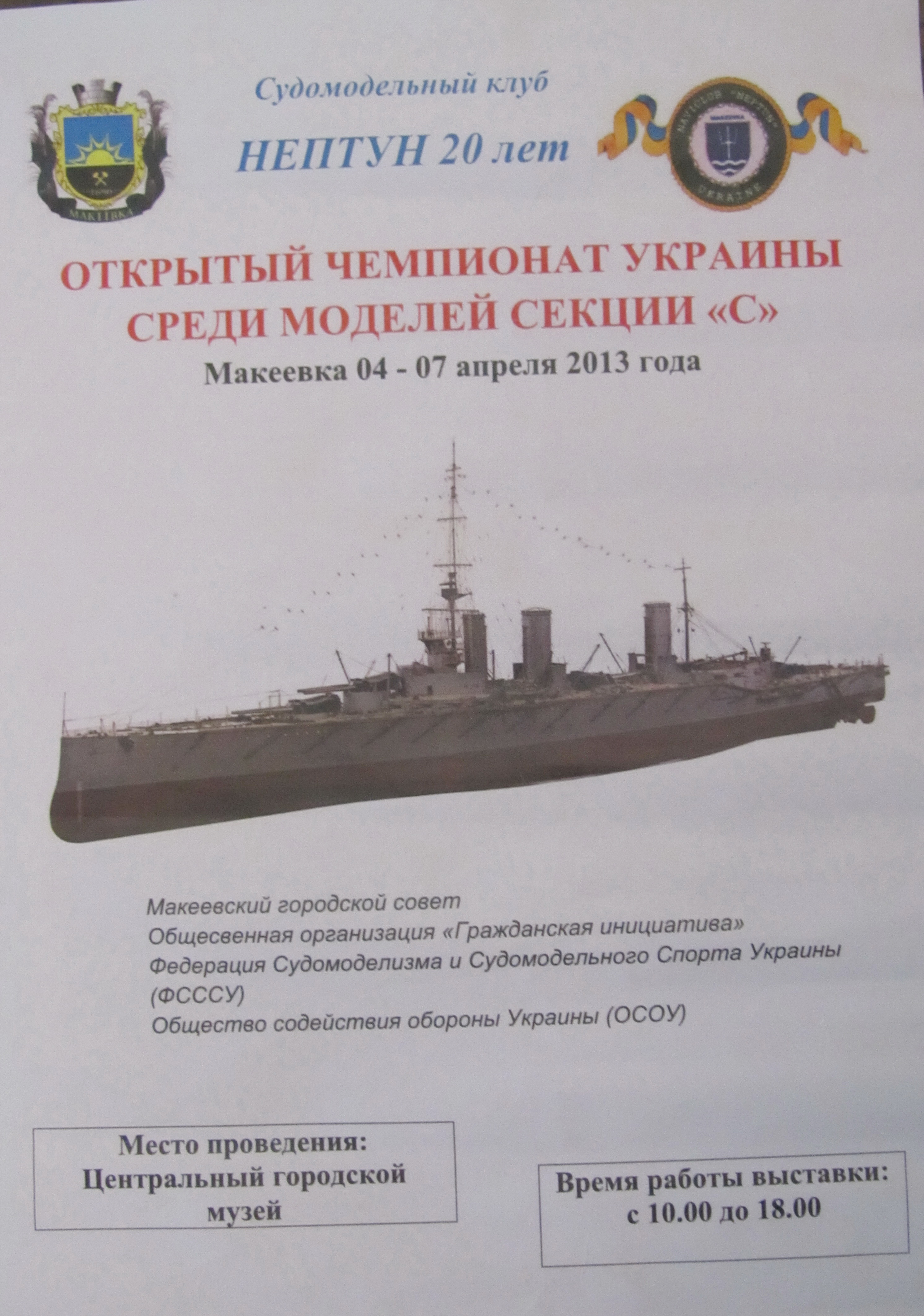 Właśnie otrzymałem kilka zdjęć z Mistrzostw Ukrainy w klasie C które odbyły się w dniach 4-7 kwietnia w miejscowości Makewka w Zagłębiu Donieckim . Do mistrzostw zgłoszono ok 80 modeli , głównie modele współczesnych jednostek pływających.