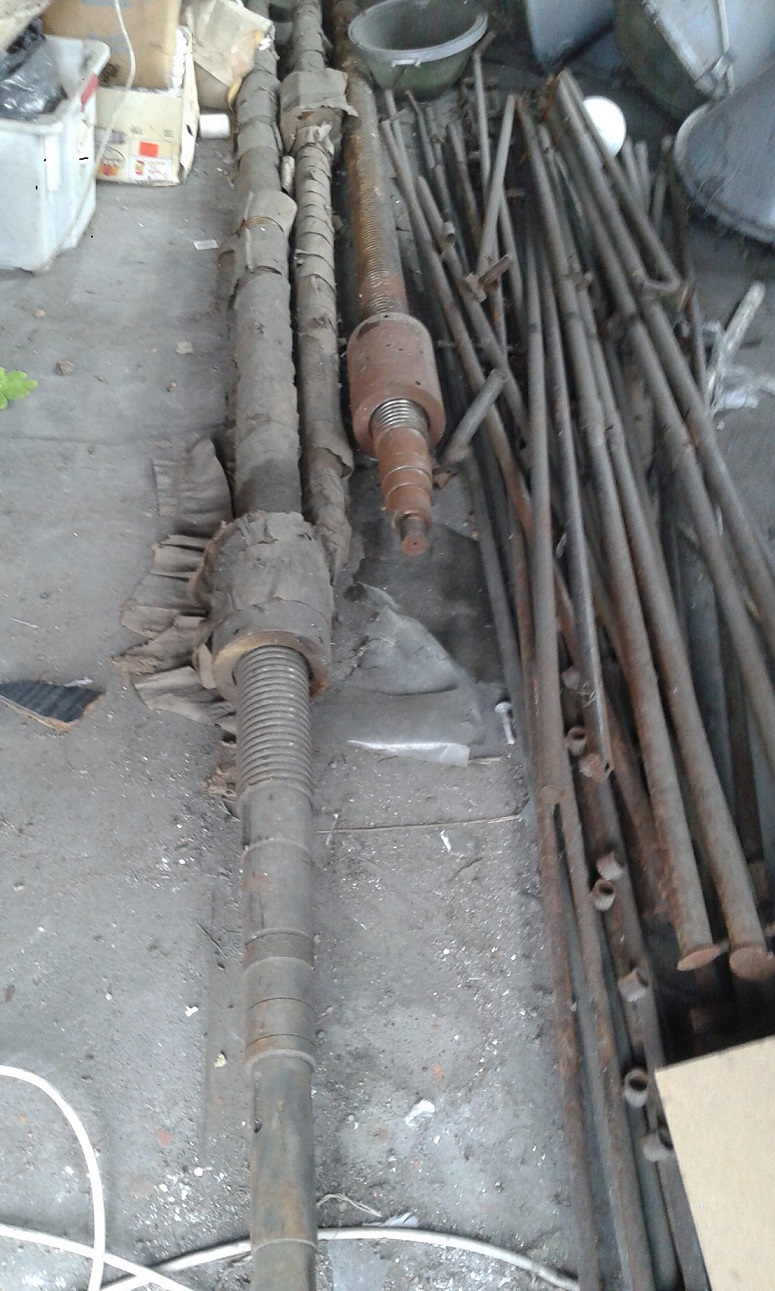 Mogą być to np. śruby pociągowe od dość słusznych rozmiarów tokarek. Tuleje na wałach były do czegoś mocowane (suport?). Ewentualnie są to śruby od jakiegoś rodzaju podnośnika warsztatowego lub do podnoszenia wagonów kolejowych przy zmianie wózka jezdnego.