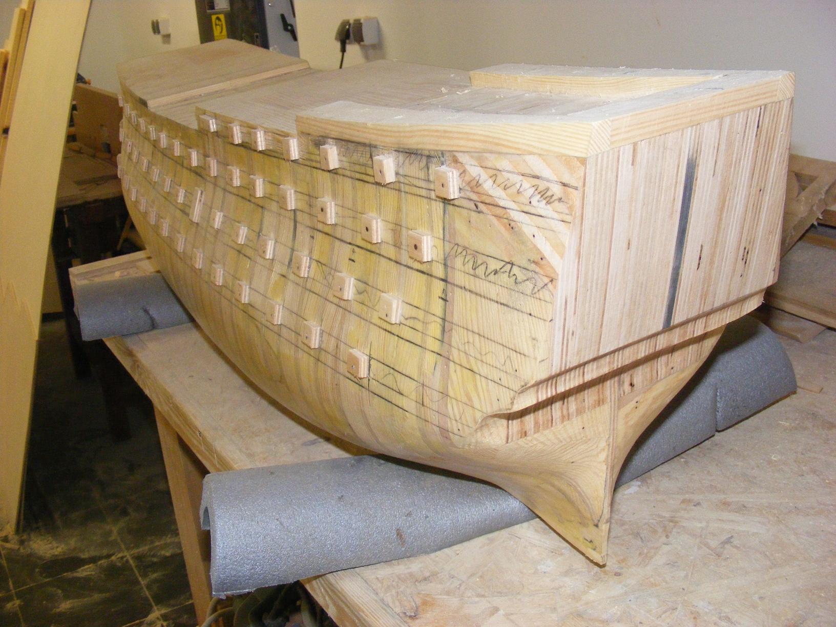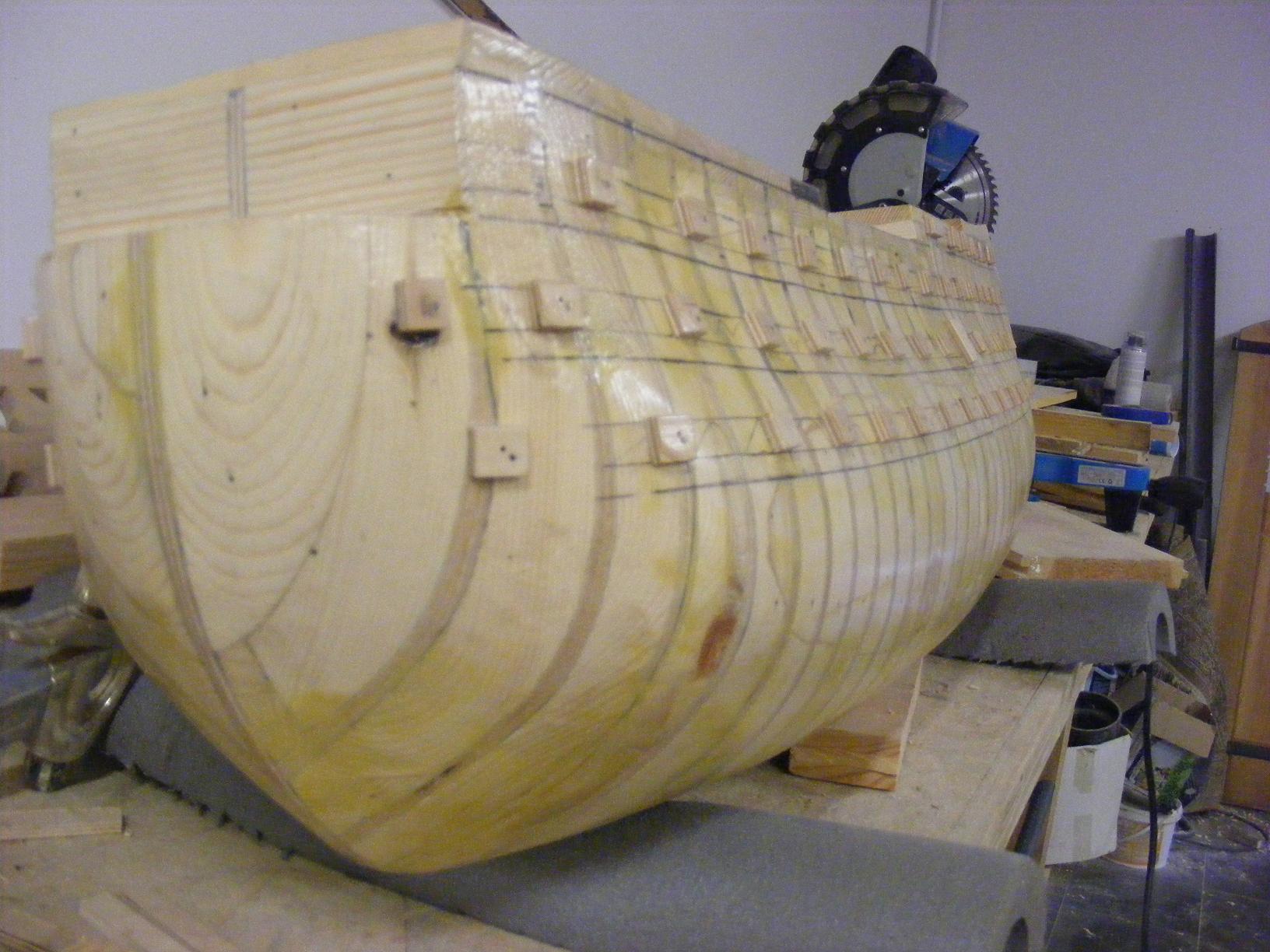 Poniżej tych listew aż do stępki będą już szły listwy 3 x 12 mm trzy warstwy i jedna na tych co już są położona .