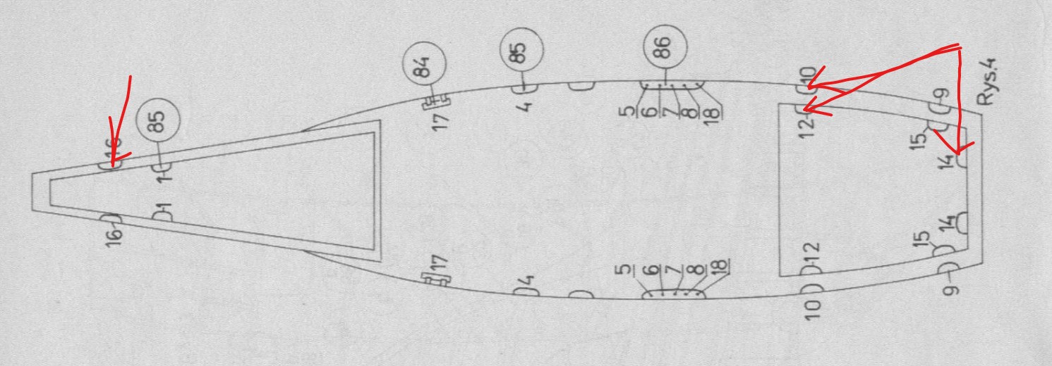Dobry wieczór. Nie jestem nowym użytkownikiem, prowadziłem relacje na Kodze pod nazwą: Lucek.(nie mam dostępu do tego konta) Obecnie buduję model Karaki z 15 wieku na podstawie szkutnika, mam problem z zaznaczonymi elementami na rys. poniżej. W opisie budowy niema tych elementów. Może ktoś z Was posiada wiedzę jaki rodzaj mocowania lin jest w tych miejscach knagi czy kołkownice czy jeszcze coś innego ??