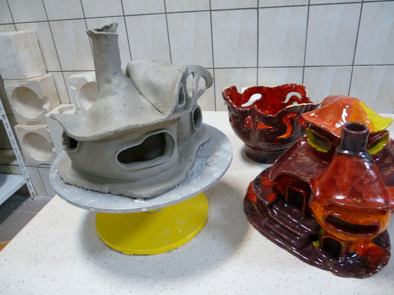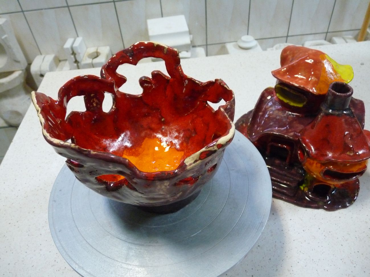 Domek wypalony, nowy w budowie, miska na cukierki itp.