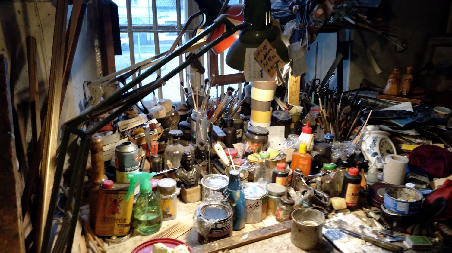 Byłem wczoraj w Łowiczu i w centrum miasta natknąłem się na ciekawy warsztat. Właściciel bardzo ciekawy człowiek, wolny od telefonu i Internetu, bardzo kulturalny z wyglądu jak by przedwojenny francuski malarz. Pozwolił mi zrobić zdjęcia, na zdjęciu nr. 4 jest jego autoportret.