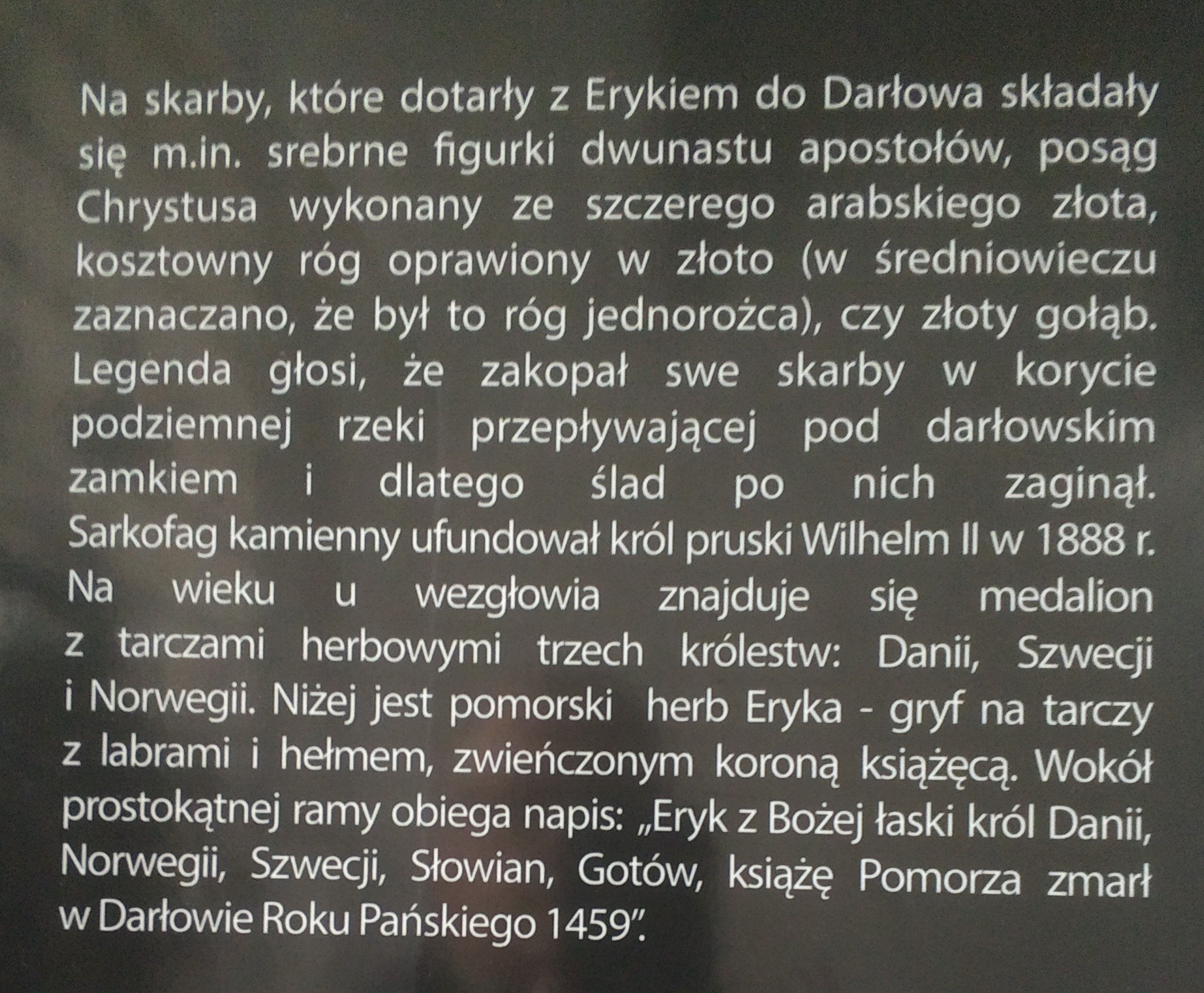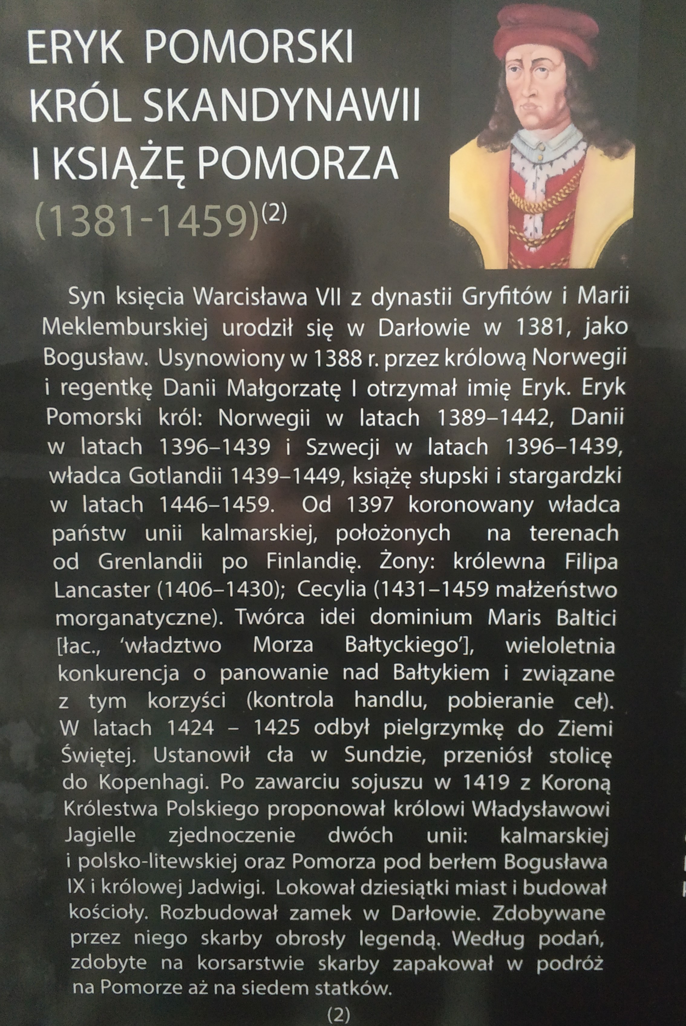 Odwiedziliśmy też króla Eryka. Tablica na kościele mariackim w Darłowie.