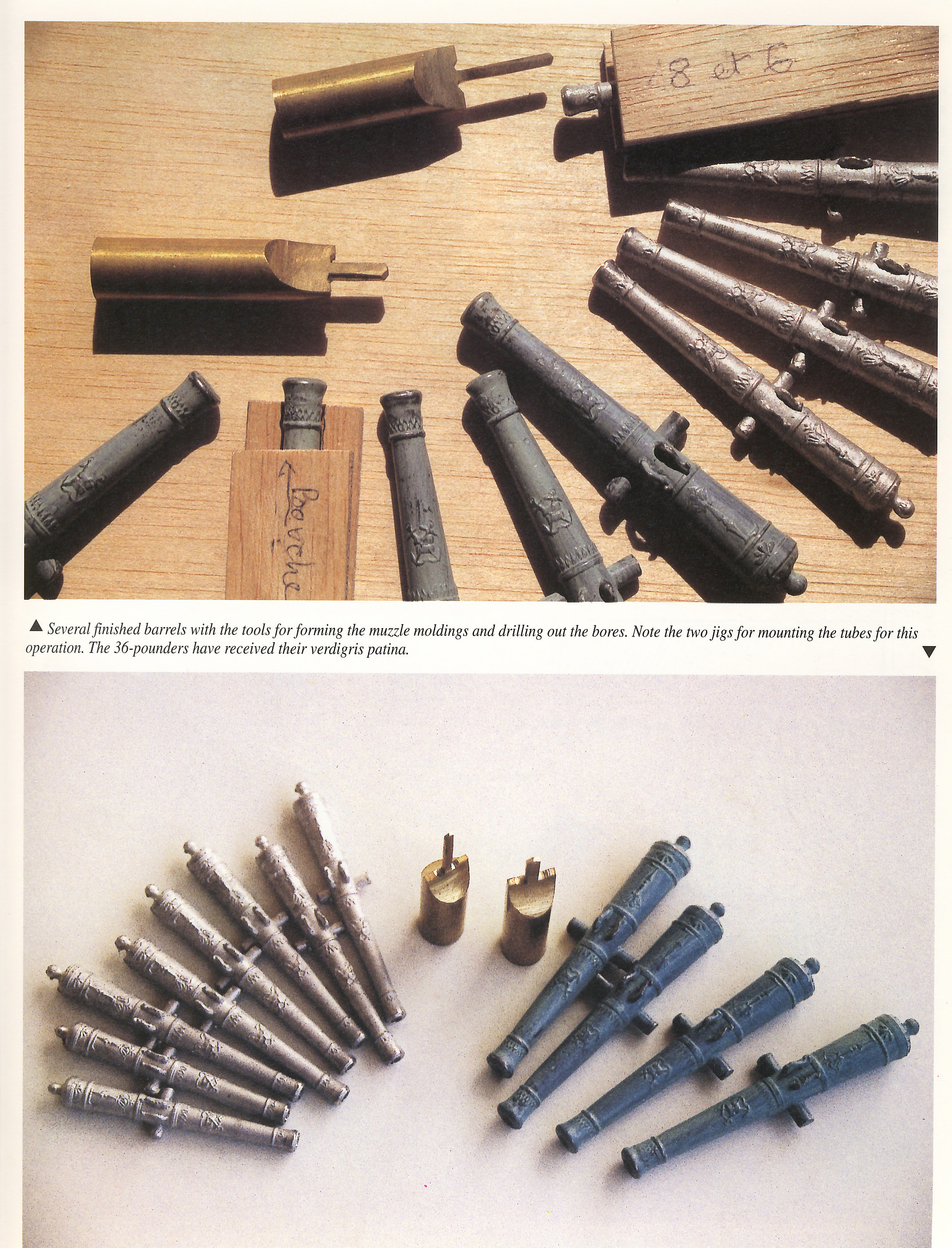 Zeskanowalem dla Ciebie dwie strony z ksiazki B. Frolicha "The Art of Ship Modeling" - te akurat na temat dzial na modelu L"Ambitieux, ktory on budowal. Wszystkie swe dziala odlewal z jakiegos stopu (?) opisujac drobiazgowo caly proces w oddzielnym rozdziale.