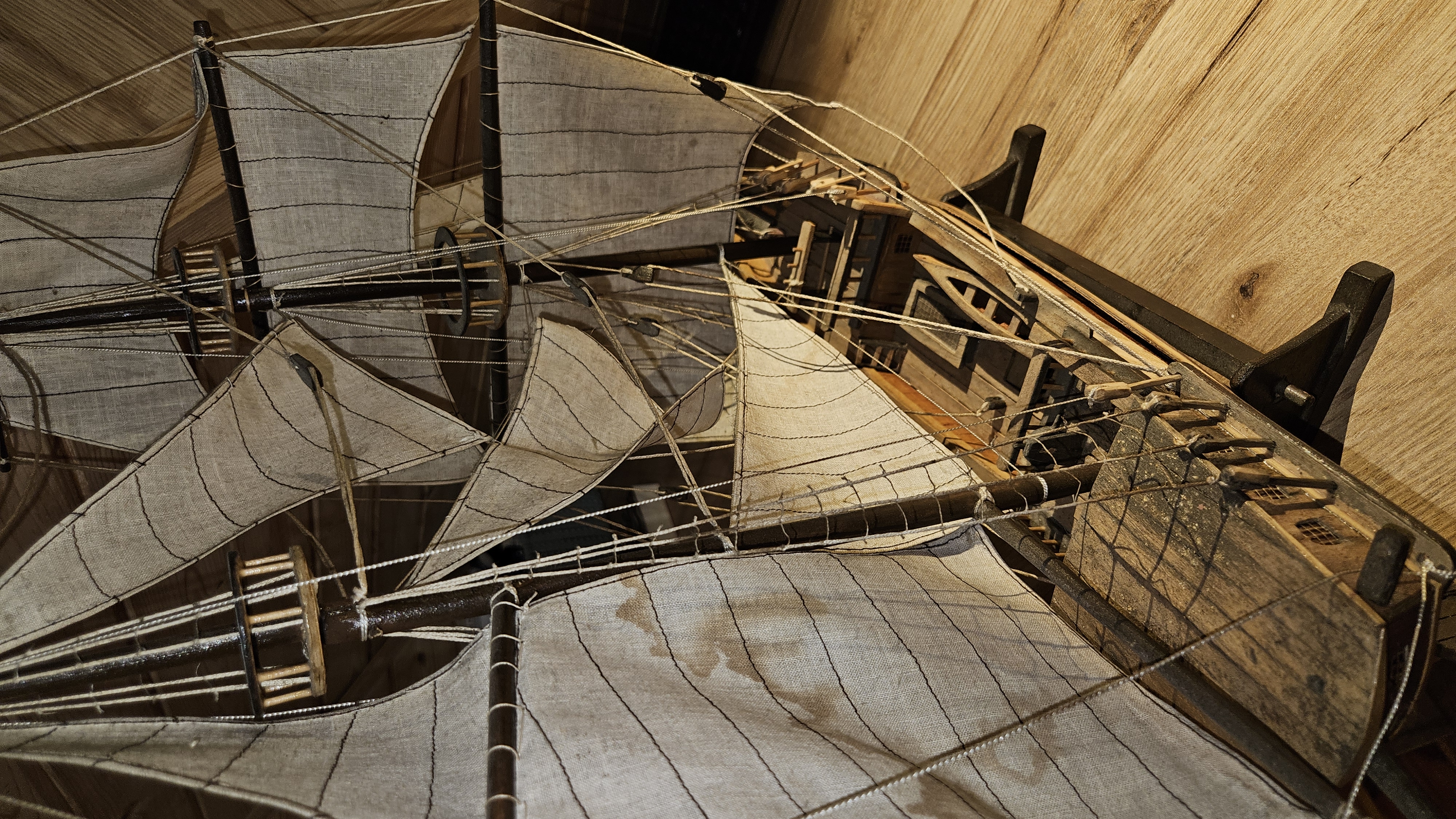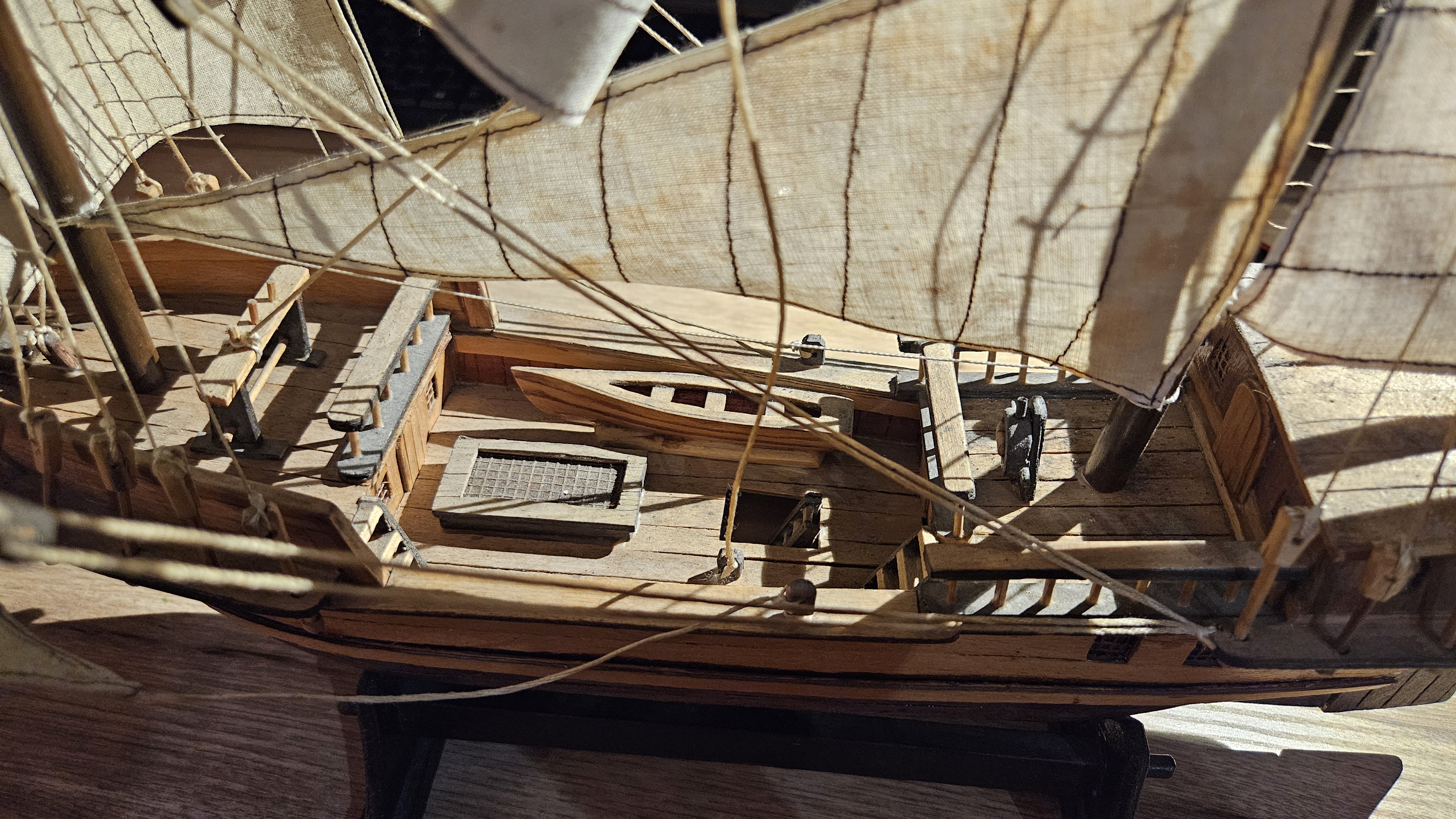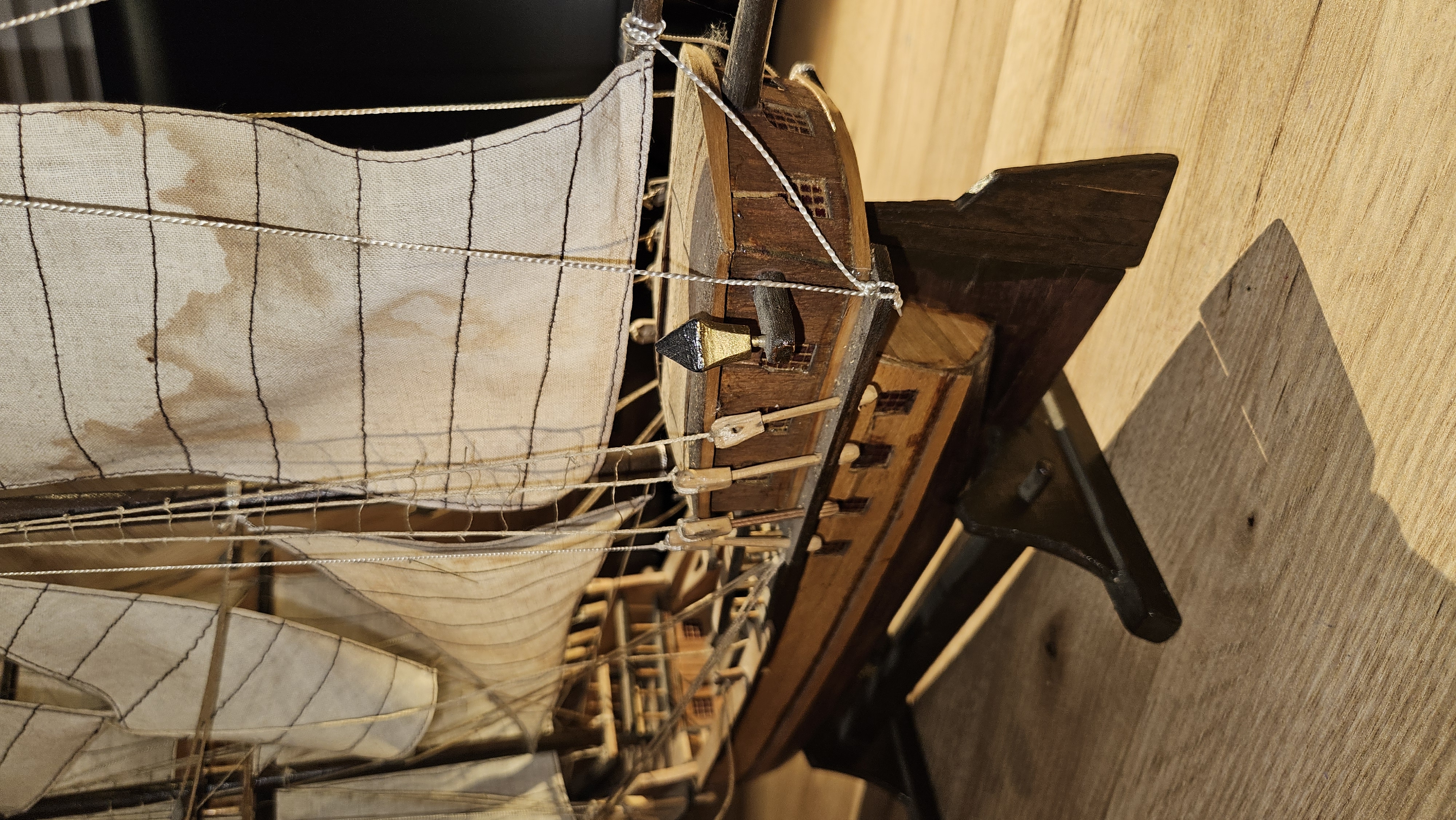 chciałabym w ten sposób zacząć moją przygodę ponieważ model nie jest bardzo zniszczony więc chciałabym przeprowadzicie jego renowacje, głównie cierpią tutaj żagle i liny które są brudne oraz niektóre elementy trzeba popodklejac no i oczywiście wyczyścić cały statek i pewnie go pomalować. Tak że przyjmę wszelkie możliwe rady!