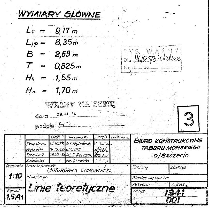 Ciekawe, że na rysunku linii teoretycznych podana jest długość 9,17 metra. Widocznie projekt projektem, ale jak budowali to wyszło im trochę więcej :-)