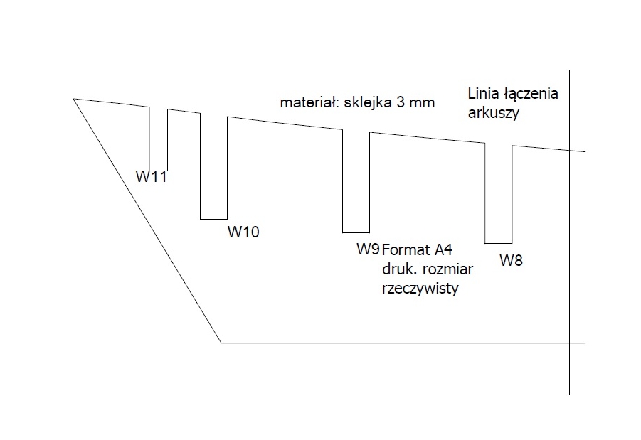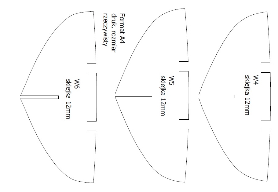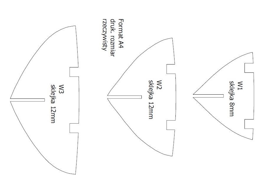 Poniżej zrzuty ekranu przykładowych arkuszy. Wszystkie arkusze formatu A4. W przypadku większych elementów, trzeba będzie łączyć arkusze zgodnie z naniesioną linią podziału.