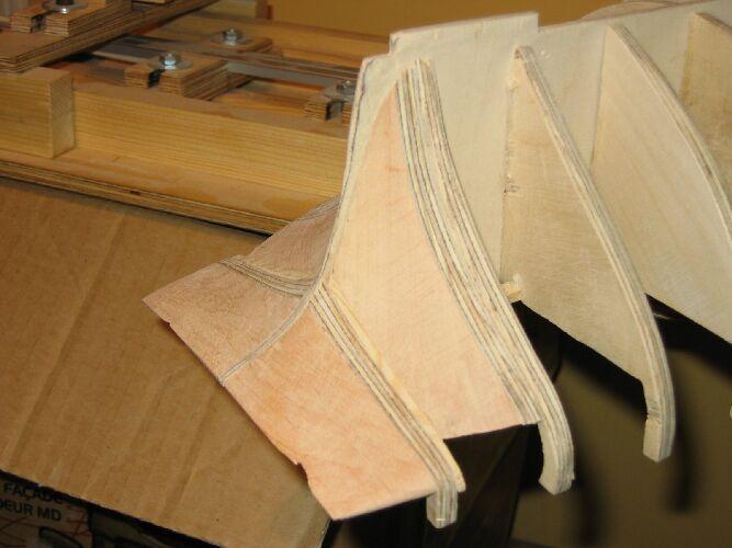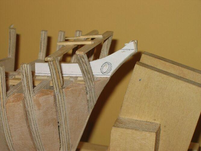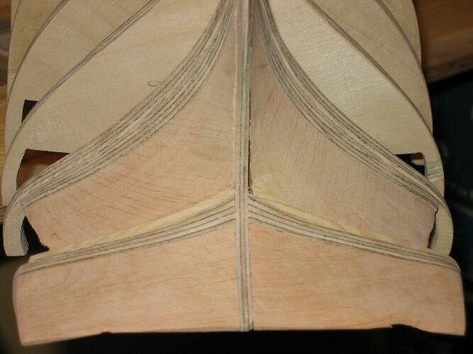 Zamieszczam kilka zdjęć, uwagami będę się sukcesywnie dzielił. Teraz tylko kilka na szybko. Przy szlifowaniu należy bardzo uważać na pierwsze ( od dziobu) wręgi. Pomimo uwagi, niestety po szlifie pękły w miejscu osłabionym. Na zdjęciu widać ślady kleju. Wypełnienia zrobiłem z olchy. Doskonałe drewno olchowe znalazłem z markecie budowlanym jako sztachetki na plot. Przebrałem i za niewielkie pieniądze mam kilka doskonałych kantóweczek wysuszonego drewna. Świetnie się obrabia. Pomocny przy tym jest Dremelek i końcówki do szlifowania. Uważajcie z prędkością, najlepiej szło mi przy minimalnej, czyli 5 tys. obrotów. Teraz zostało mi tylko dopieścić szlif wręg. Muszę tylko prześledzić w relacjach Kolegów dokładna linię wypełnienia rufy. Jeśłi pomnę, to widziałem dwie wersje. Liczę na opinię kolegów na temat moich dotychczasowych dokonań.