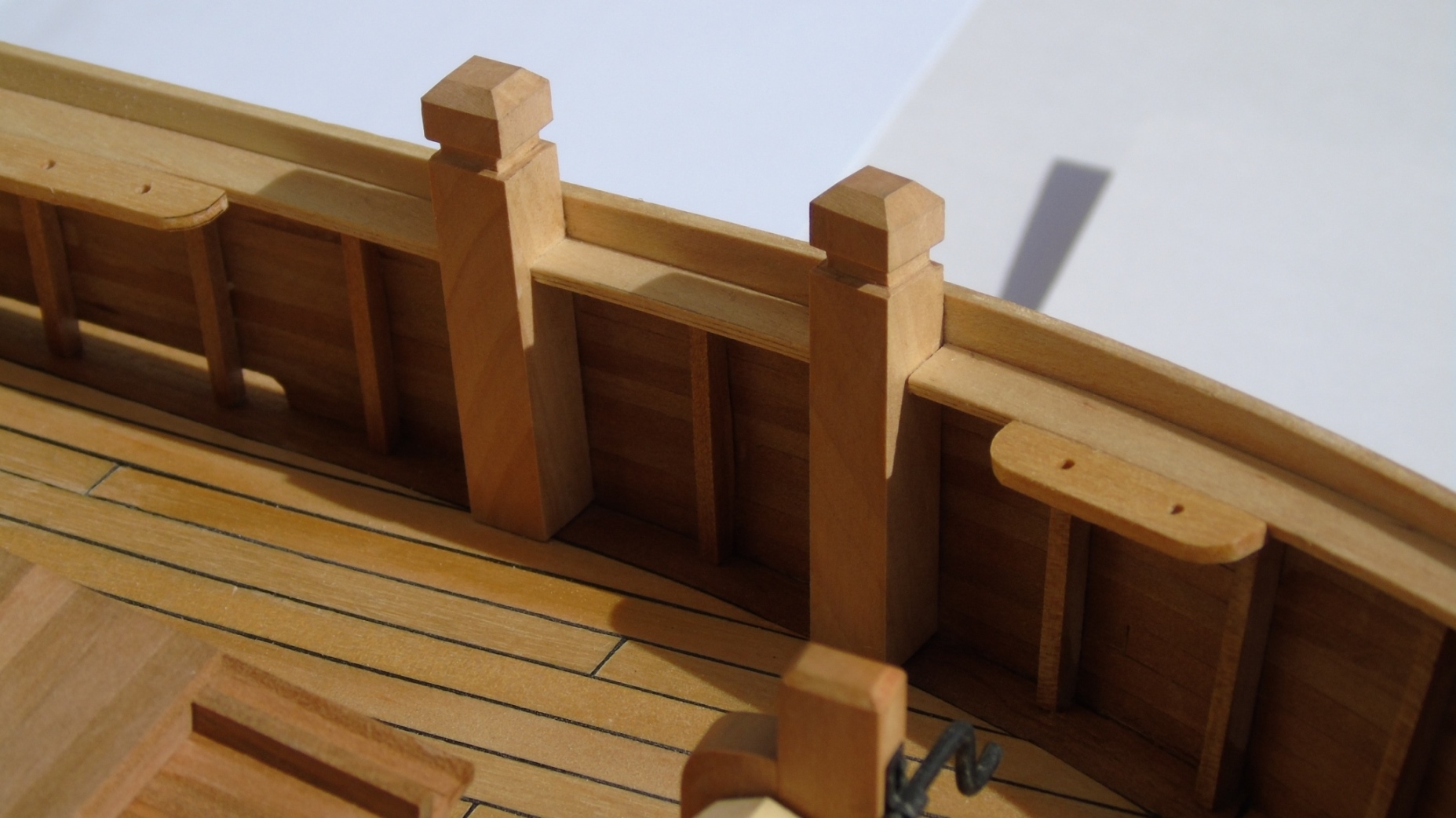 Miałem sporo problemów z pawężą i niestety nie wyszła tak jak chciałem. Powinien też wbić w poszycie i pokład kilka tysięcy gwoździ. Ale to dopiero przy następnym modelu.