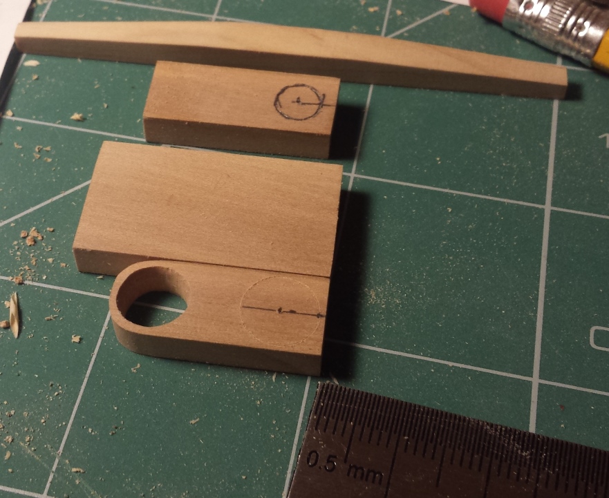 Poszczególne elementy wykonałem z gruszy, otwory wierciłem małym wiertłem, a następnie szlifowałem papierem przyklejonym na wałek.