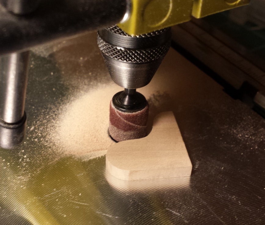 Poszczególne elementy wykonałem z gruszy, otwory wierciłem małym wiertłem, a następnie szlifowałem papierem przyklejonym na wałek.