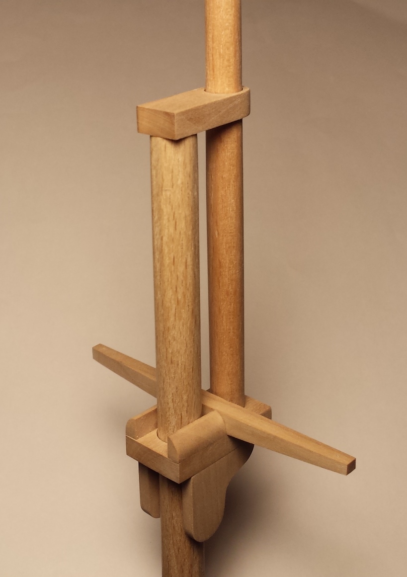 Poszczególne elementy wykonałem z gruszy, otwory wierciłem małym wiertłem, a następnie szlifowałem papierem przyklejonym na wałek.