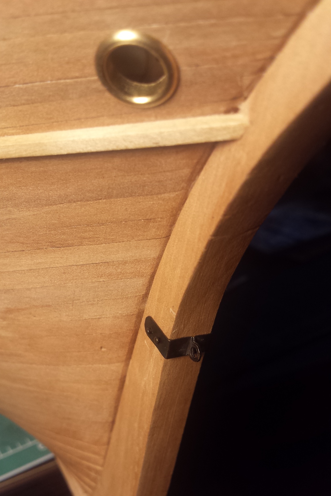 Wiem, że okucia powinny przebiegać pod ostatnią listwą. Nie chce jej już odrywać ponieważ mógłbym zrobić trochę szkód. O tych okuciach trzeba pomyśleć dużo wcześniej. Tym którzy teraz zaczęli budowę modelu polecam wykonanie odciągów wcześniej.