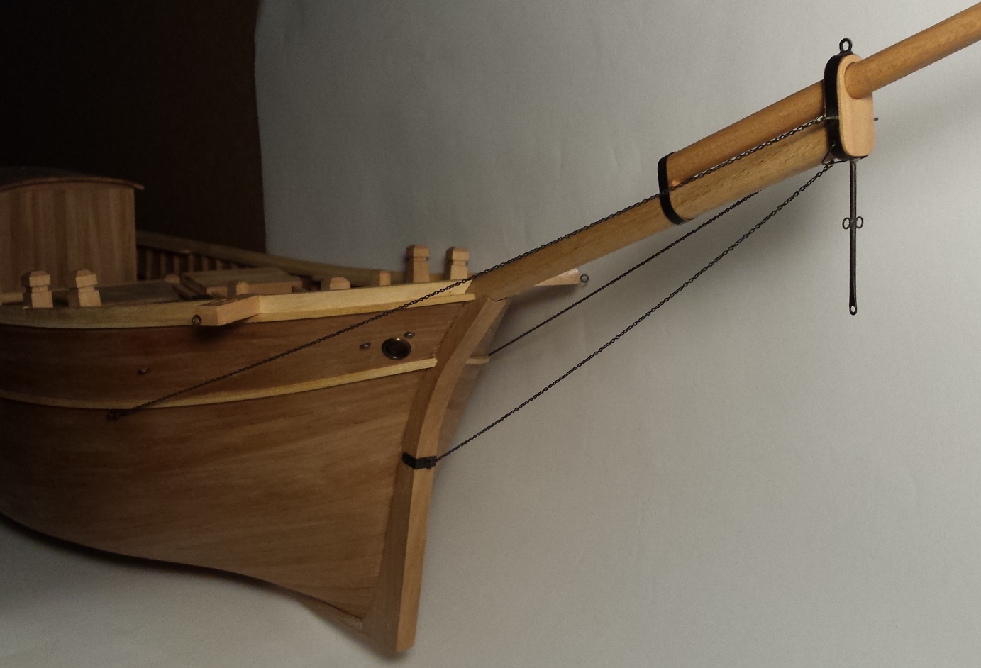 Poniżej kilka zdjęć z budowy masztów oraz bukszprytu. Drzewce to wałeczki z OBI, wstępnie heblowane mini strugiem a następnie szlifowane papierem. Metoda wielokrotnie pojawiała się forum.