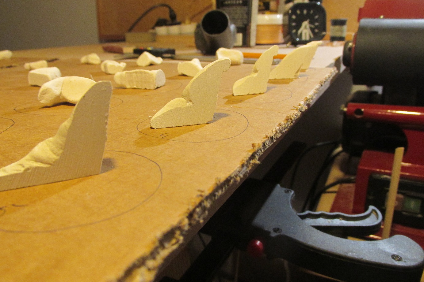 Wczoraj trochę posiedziałem w modelarni. Odciąłem końcówki grodzi, przeszlifowałem je pod pokład i nawierciłem otwór pod grota. Wiercenie nie jest moją mocną stroną :-) No i rozpocząłem pierwsze przymiarki listew pokładu podczas szlifowania.