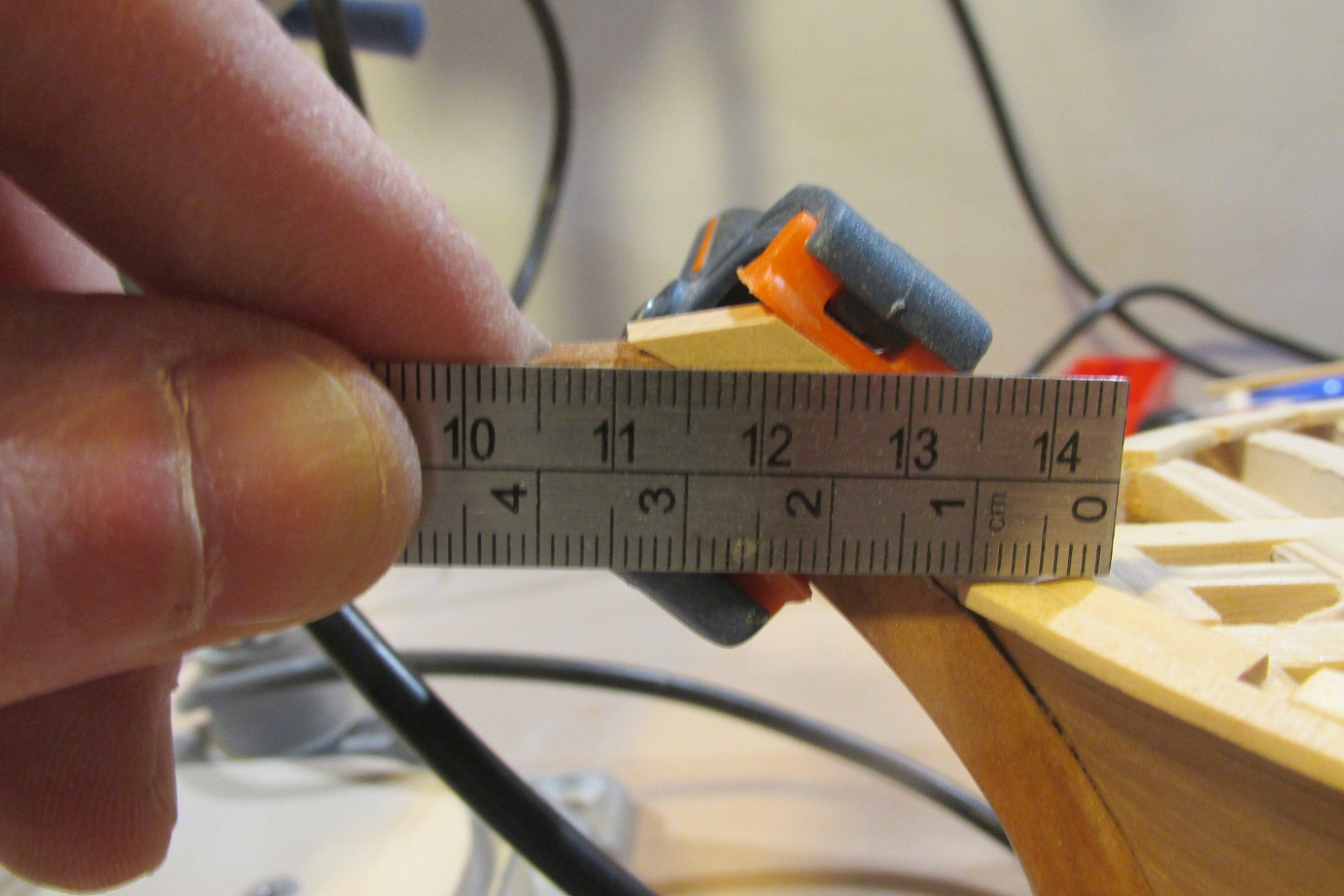 Plan pokładu trafił znów na kadłub, żeby zaznaczyć usytuowanie końcówek wręg.
