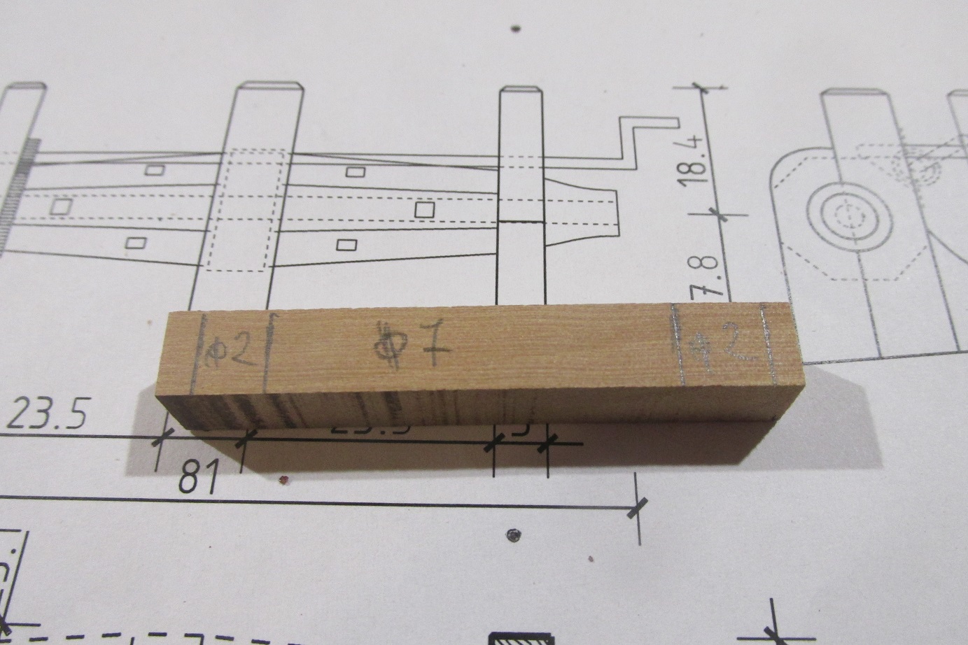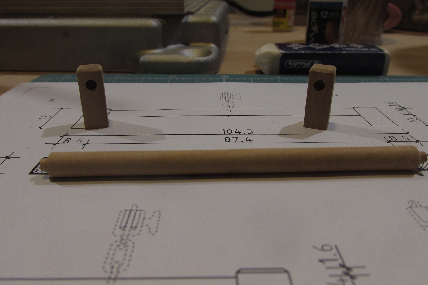 Wytoczyłem wałek z sosny, tak jak w planach fi 14.