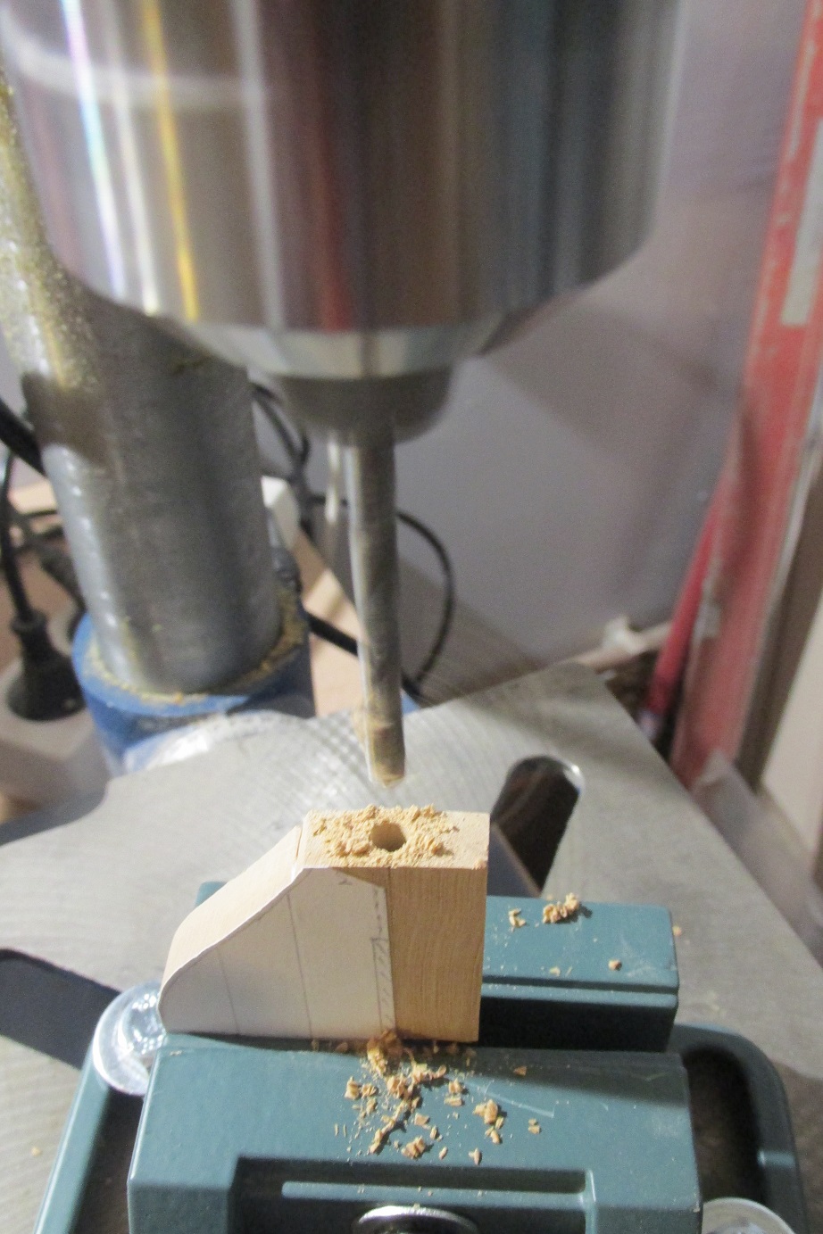 Pomiędzy naddatkiem a właściwym sterem nawierciłem otwór.