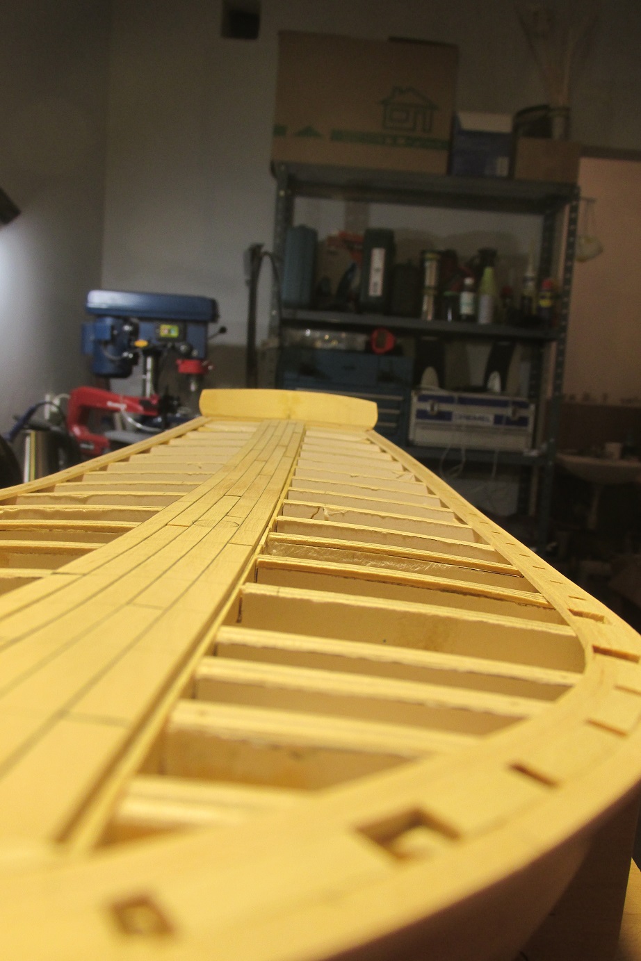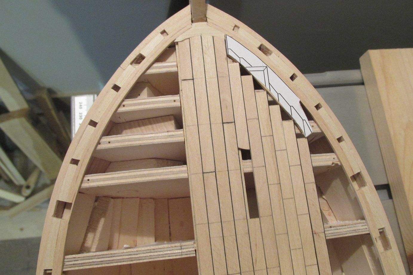 Może się mylę, ale wydaje mi się, że układ planek powinien być symetryczny (lustrzane odbicie) po obu stronach osi podłużnej pokładu. Poza tym SUPER!