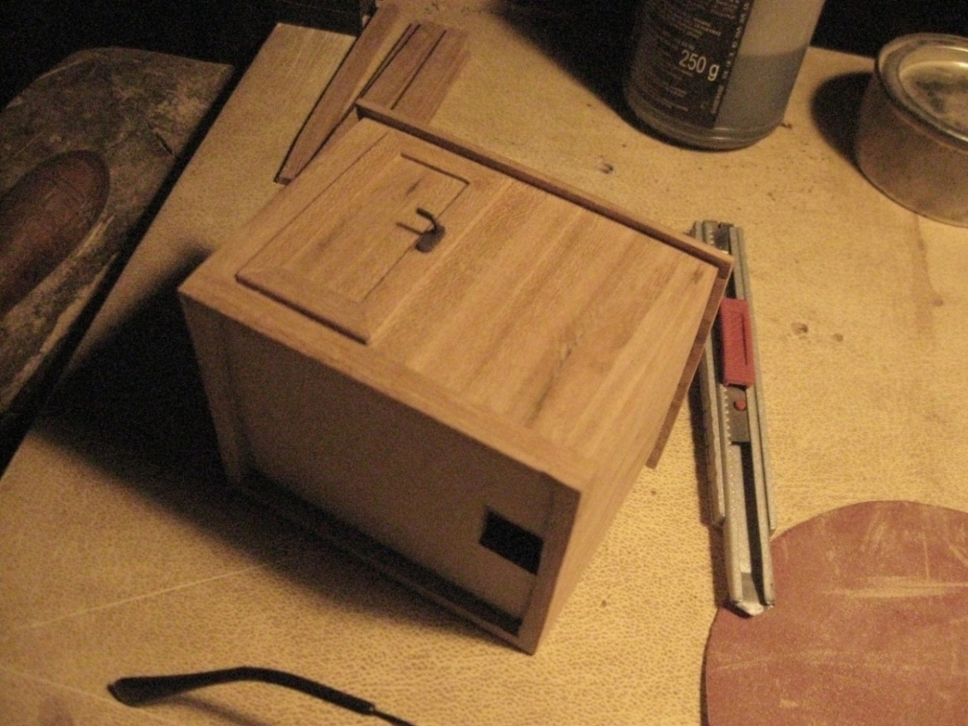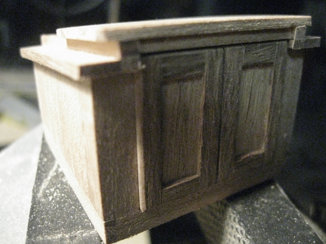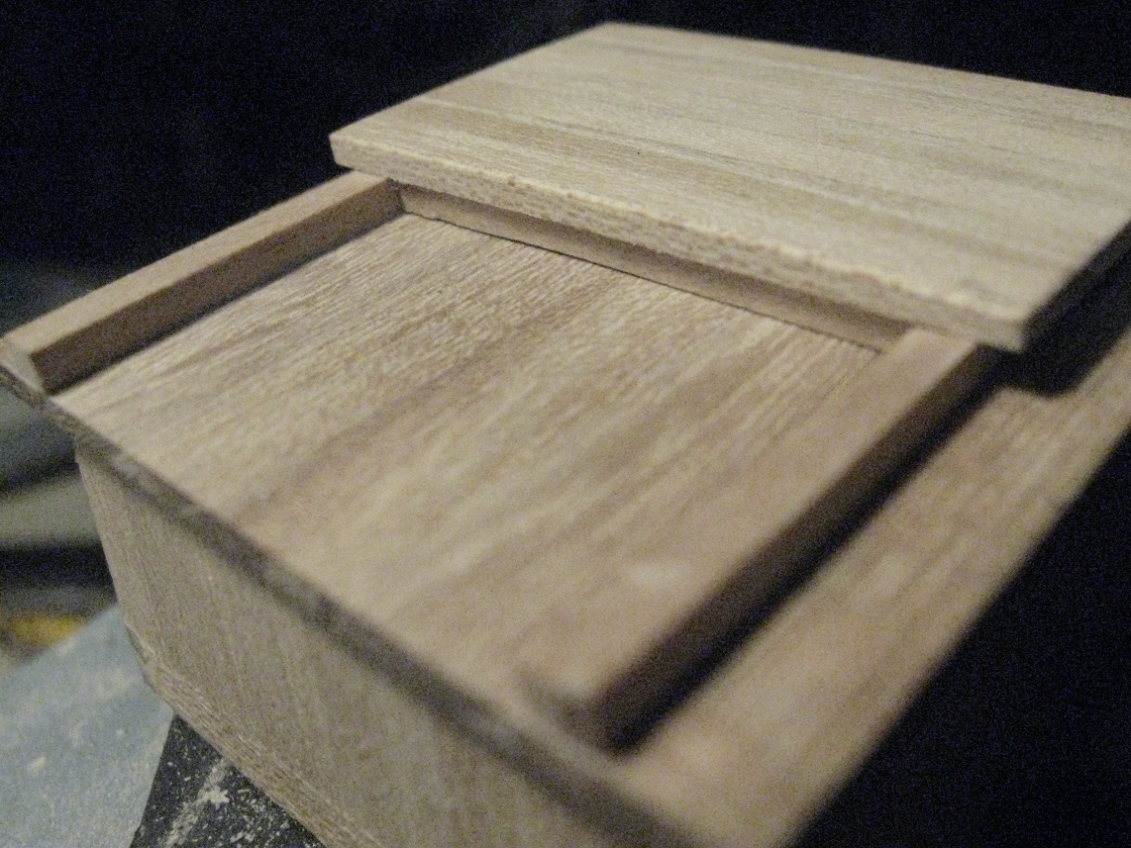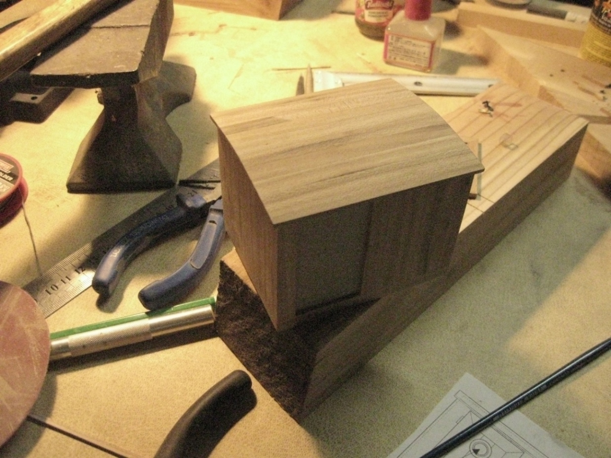 Ciąg dalszy prezentowania zdjęć z wcześniejszych zmagań z budową modelu K&M, tym razem nadbudówki. Korpus wykonałem z tektury o grubości 1,5 mm (taką miałem pod ręką), po wycięciu ścianek i sklejeniu, oklejałem listewkami wiązowymi grubości 2 mm. Resztę widać na zdjęciach: