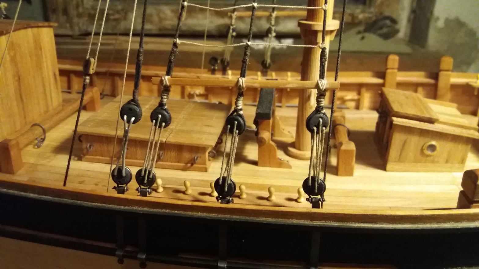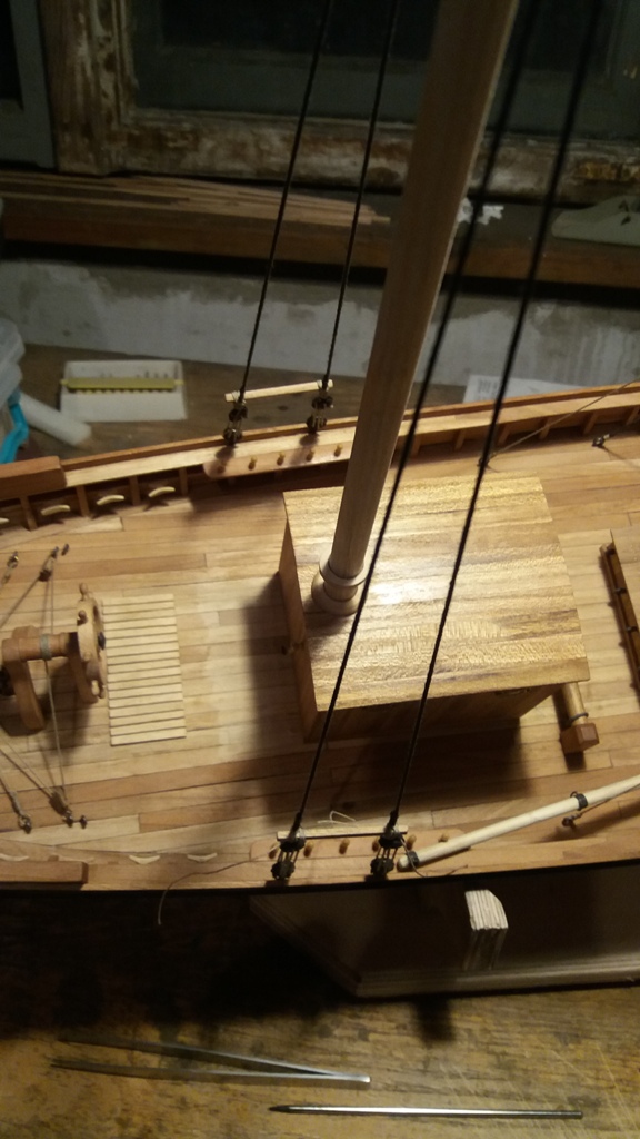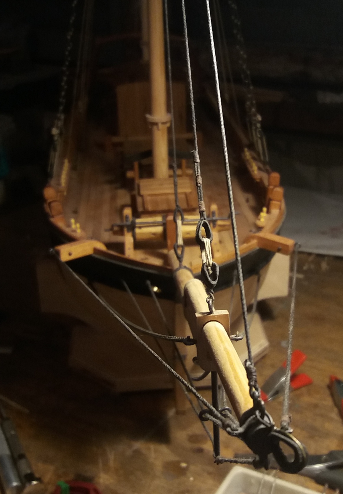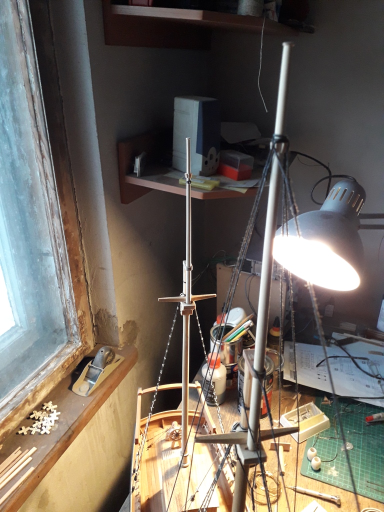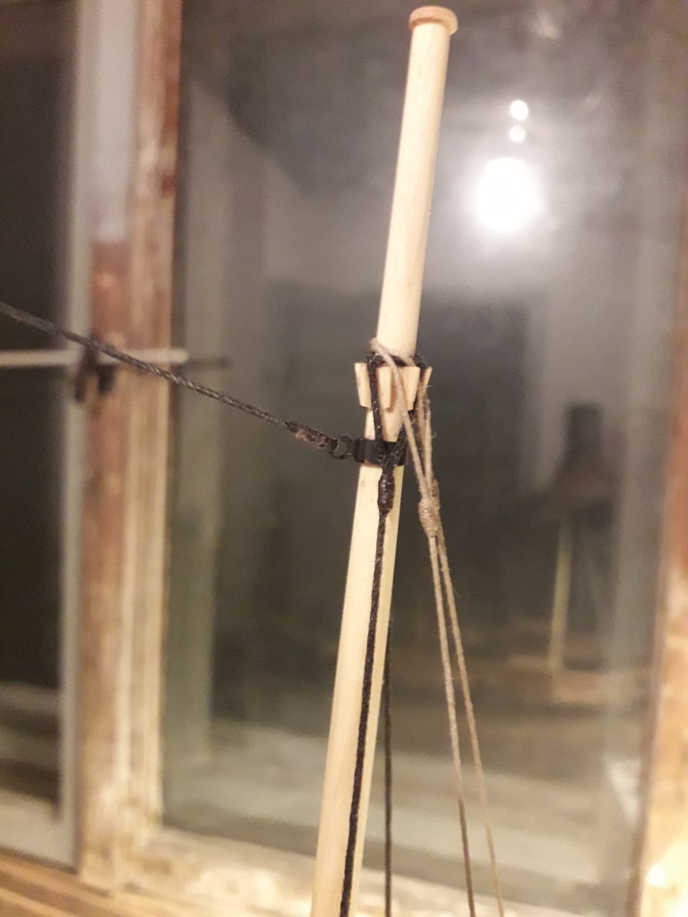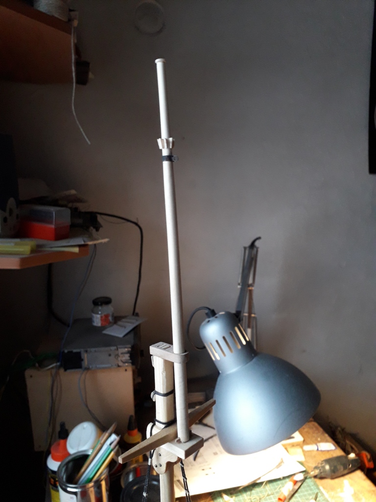 ciąg dalszy okuwania bomów, tym razem bezanmasztu