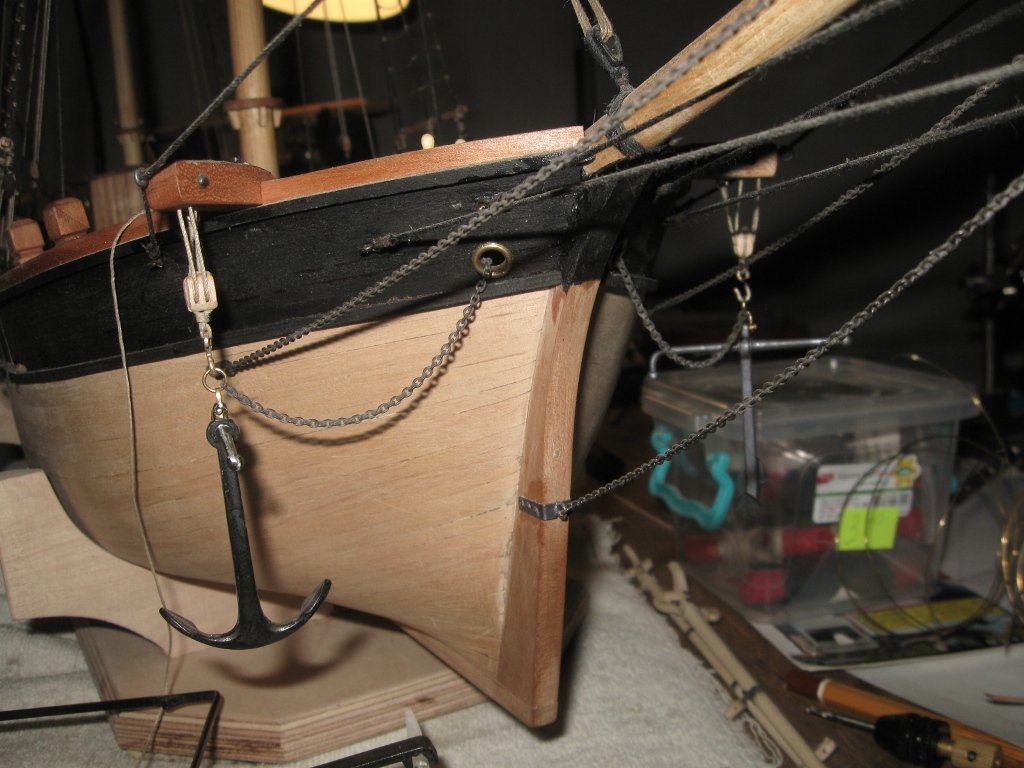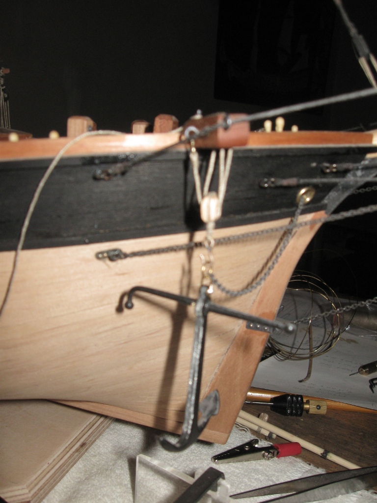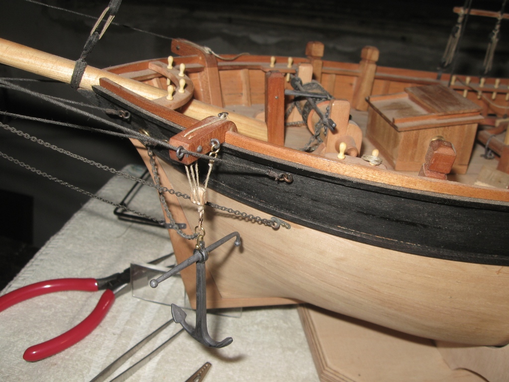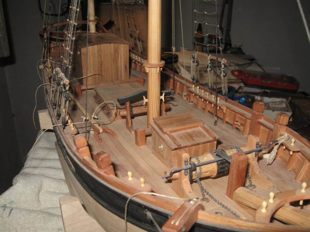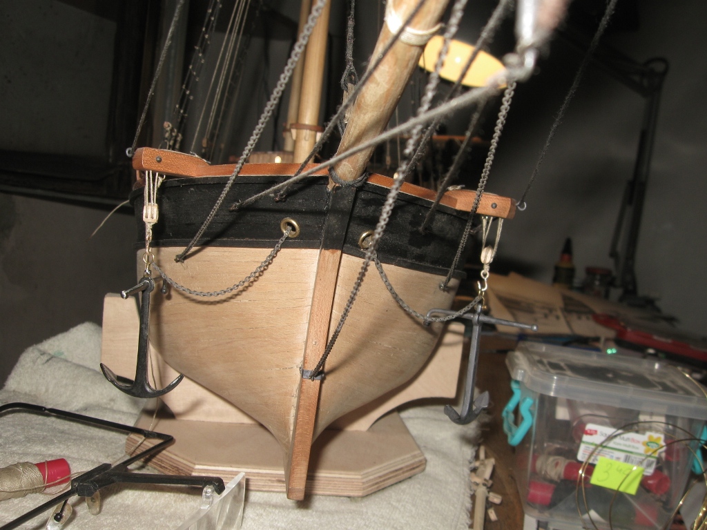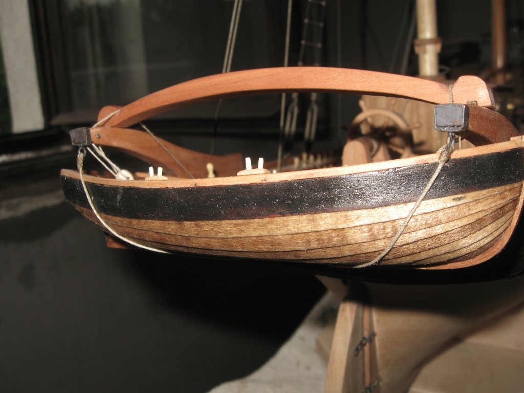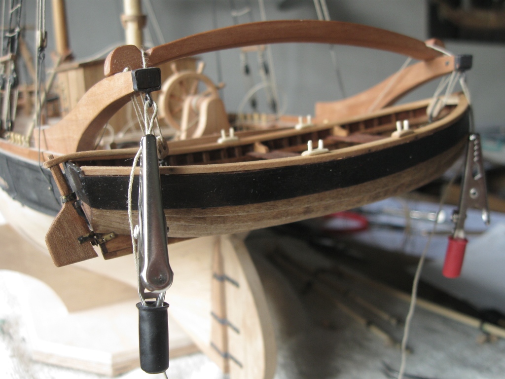 prace przy K&M zbliża się powoli do końca, na obecnym etapie zamontowałem na rufie szalupę: