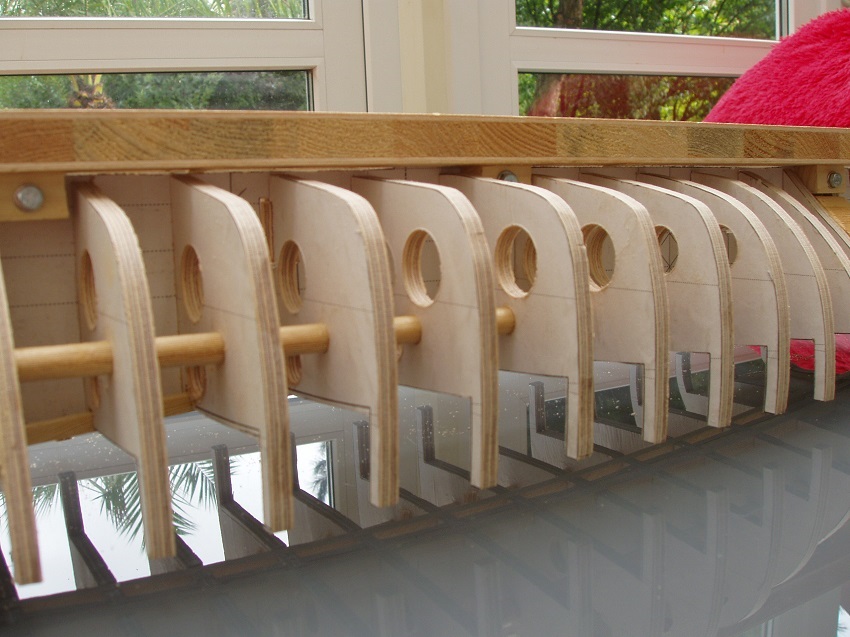 Skorzystałem z ostrzeżeń Rafała (Ralfee) dotyczących wręgi 7 i 8. Sam też chcę ostrzec o zapadnięciu wręgi 11 w części dennej. Nakleiłem tam fornir 0,5 co pozwoliło uniknąć powstaniu tak zwanych " krowich żeber"