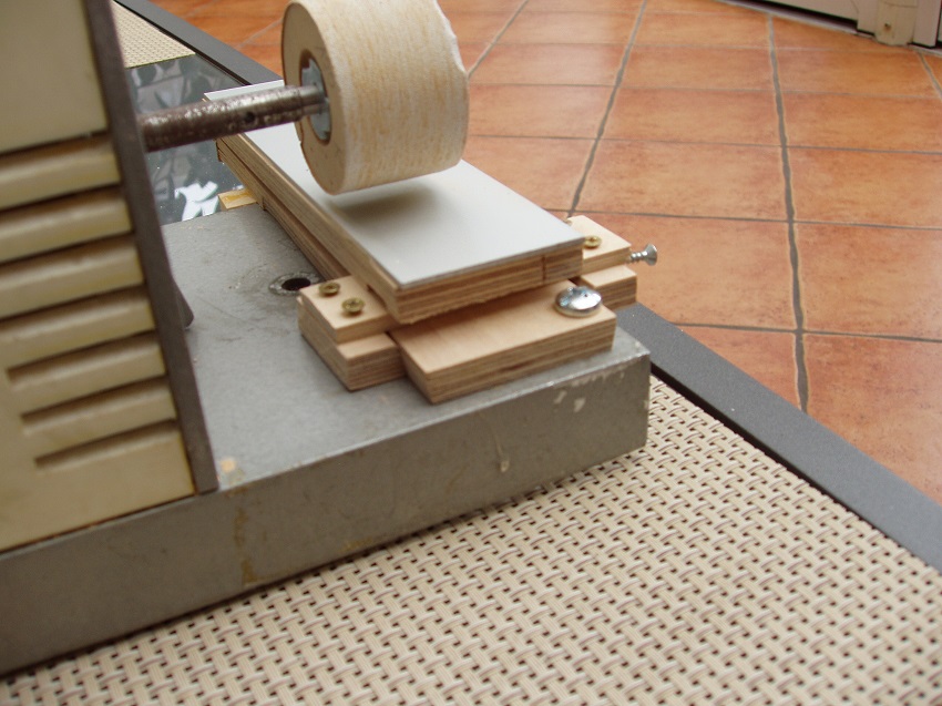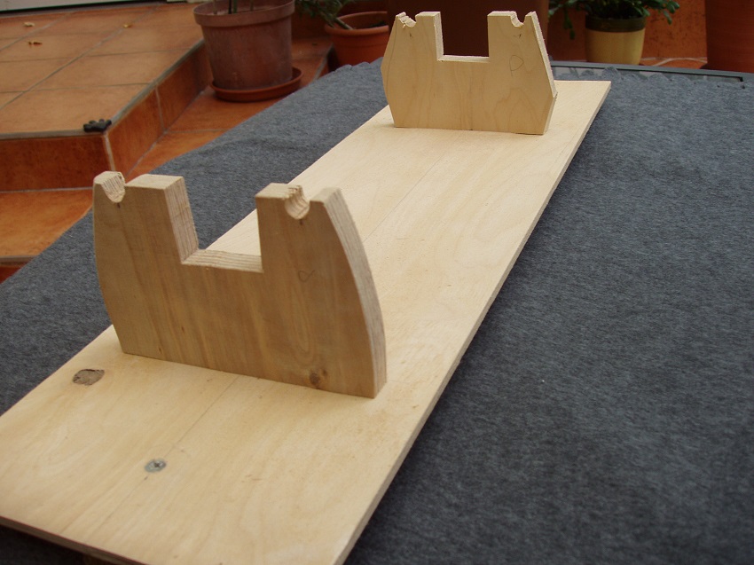Udało mi się zakupić trochę drewna: sztachety olchowe w markecie i resztki desek gruszy i brzozy od stolarza. Narzędzia do dyspozycji to zakupiona w CSH w 1971 roku radziecka maszynka modelarska K-1 o mocy 240 W oraz pilarka tarczowa. Oprzyrządowanie do tego wykonałem sam. A tak to wygląda