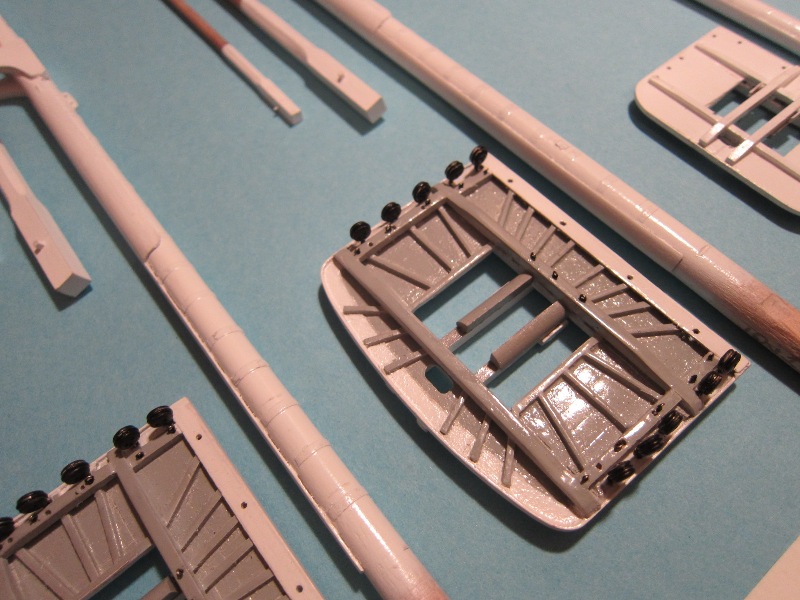 Co do kółeczek i sposobów na nie, podpowiadanych przez Kol. Kazimierza– spróbuję na pewno, gdy będę robił kółka. Na razie to są oczka (eyebolts) do wklejenia w otworki. Z resztą, klejenie drucików „na styk” cyjanoakrylem już robiłem, przy montażu anten na duńskim kutrze. Kolejne takie klejenie będę robił, składając osłony zejściówek do Ironsides’a. Wiem, że bez odpowiedniego szablonu – klocka nie uda się.