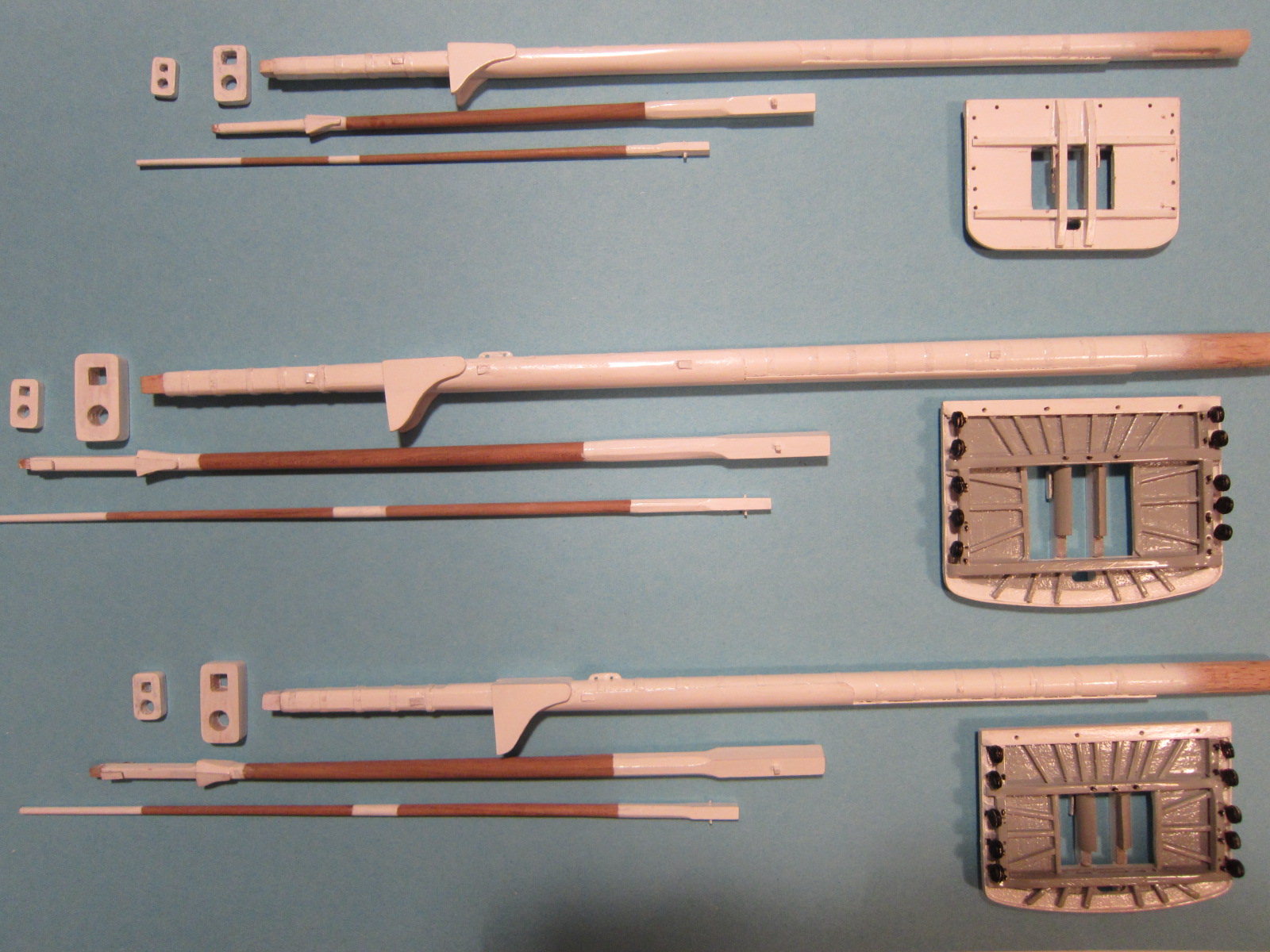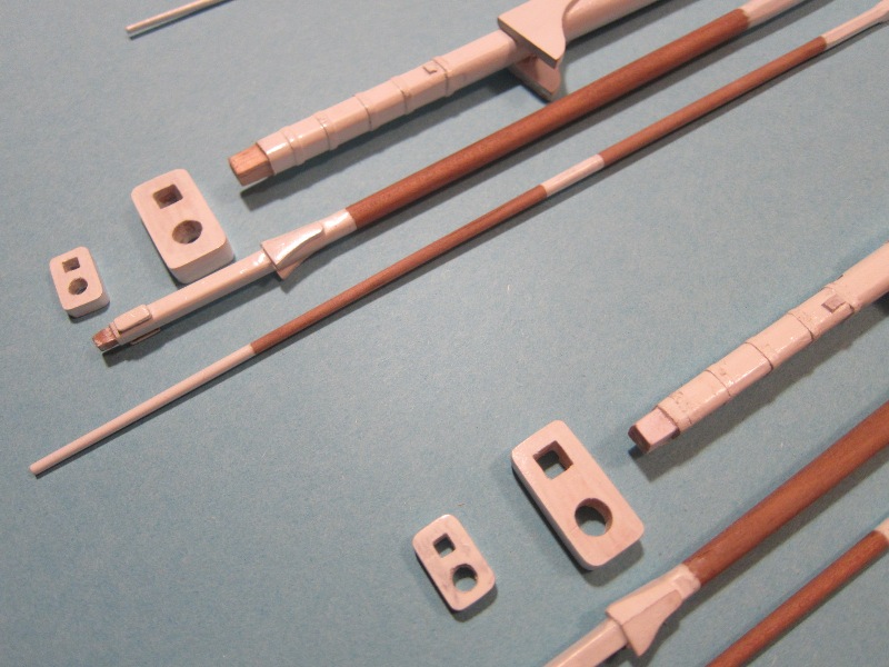 Co do kółeczek i sposobów na nie, podpowiadanych przez Kol. Kazimierza– spróbuję na pewno, gdy będę robił kółka. Na razie to są oczka (eyebolts) do wklejenia w otworki. Z resztą, klejenie drucików „na styk” cyjanoakrylem już robiłem, przy montażu anten na duńskim kutrze. Kolejne takie klejenie będę robił, składając osłony zejściówek do Ironsides’a. Wiem, że bez odpowiedniego szablonu – klocka nie uda się.