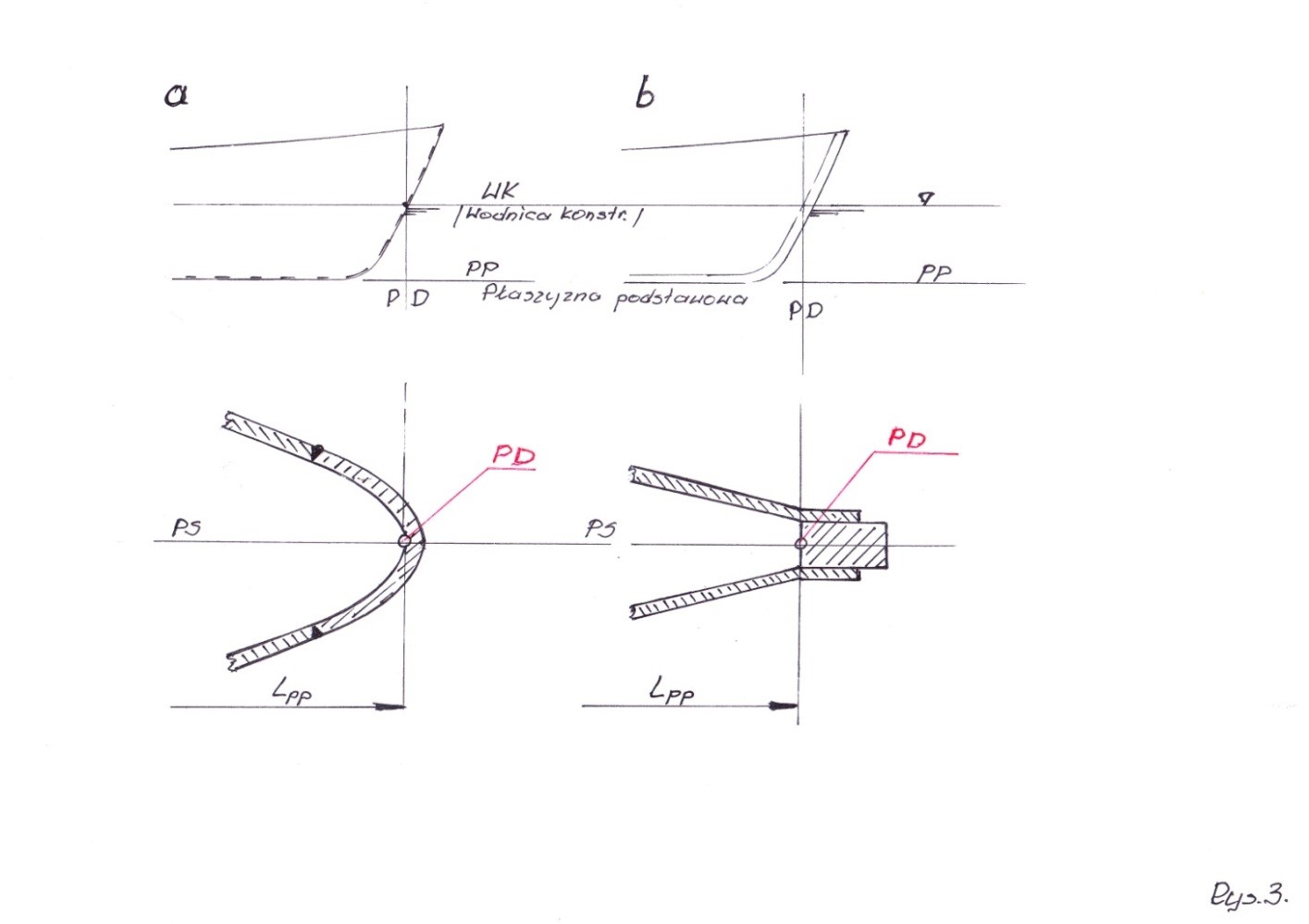 WK – wodnica konstrukcyjna lub inna nazwa KLW – konstrukcyjna linia wodna