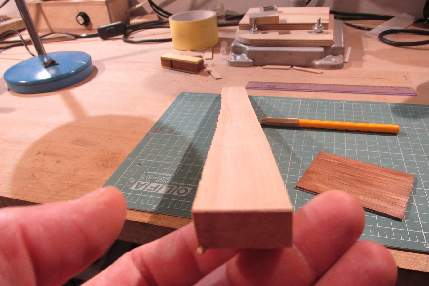 Akurat dziś musiałem dorobić kilka listew aby zakończyć poszycie. Potrzebowałem listew 6,7mmx2mm. Ja to robię tak: