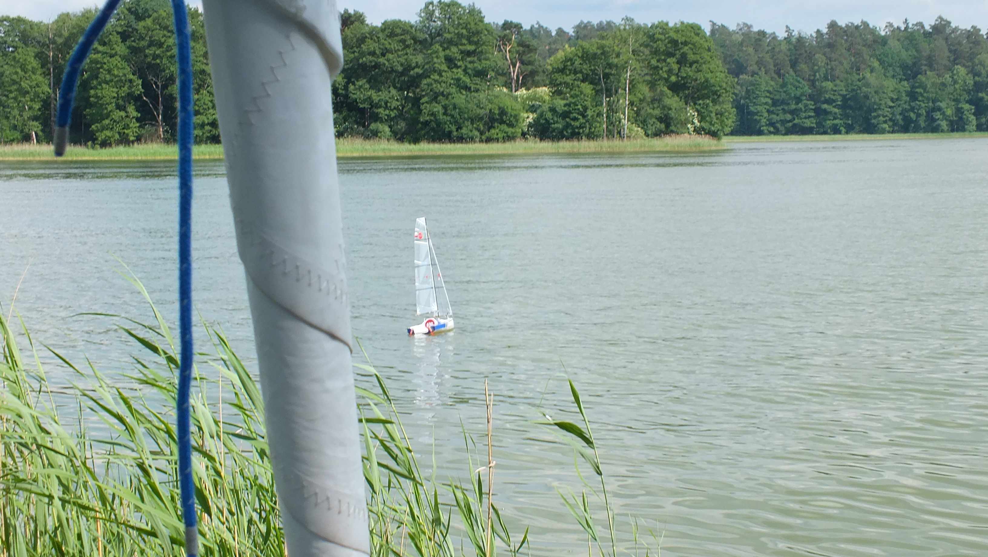 Podczas jedengo z rejsów zabrałem pod pokład jachtu skrzynkę z modelem. Rozgościła się na połowie dziobówki. Kilka zdjęć z pływania po Bełdanach.