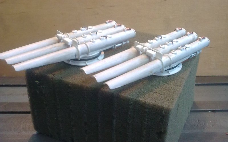 Powolutku do przodu, ale niestety nie w takim tempie jakby to sobie każdy życzył. Nadzieją są jesienno-zimowe wieczory na modelowanie, ale do rzeczy. Dalej męczę wyrzutnie torped. Połączyłem rury z podstawami więc coraz trudniej dla moich zgrabiałych paluchów. Przepraszam też za jakość zdjęć bo narazie jestem zmuszony robić telefonem.