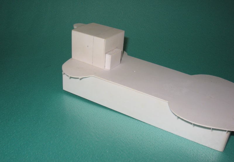 Trochę przybyło drobnicy przy podstawach armat, no i zacząłem tworzyć bryły nadbudówek.