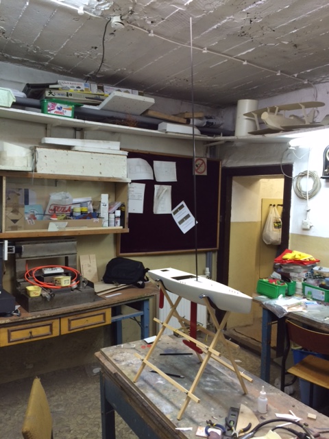 W pokładzie zostały wywiercone otwory pod mocowania want i okucia masztu. Okucie masztu otrzymało dwa druty o średnicy 1mm, które będą wklejone w konstrukcje, mające za zadanie wzmocnienie mocowania masztu. Płetwa sterowa i miecz z bulbem, zostały pomalowane na czerwono, a kadłub na biało. Za tydzień prace nad masztem.
